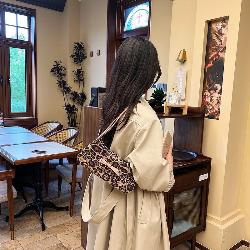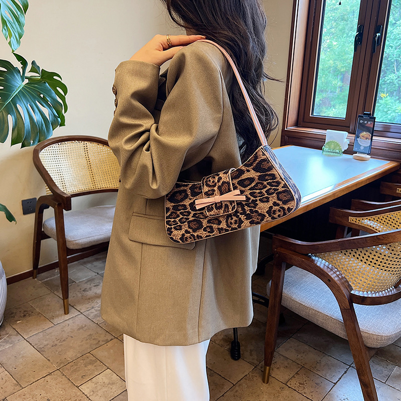 高级感豹纹复古时尚法棍手提包新款上班通勤休闲腋下单肩包女