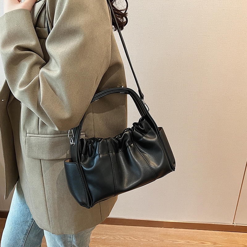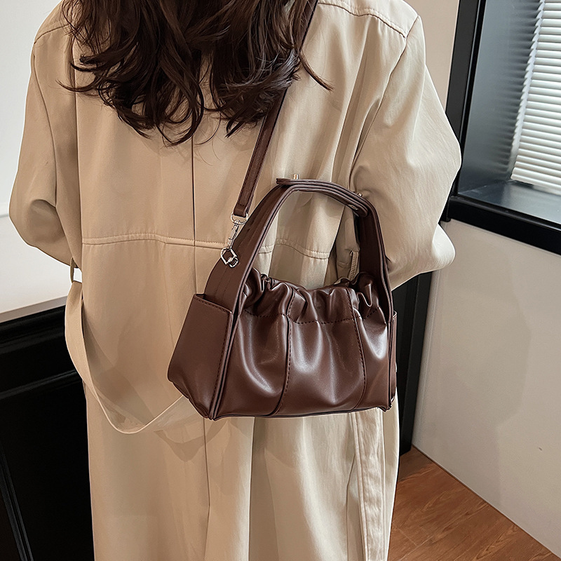 复古时尚褶水桶包女新款秋季美拉德高级感单肩包小众设计女包