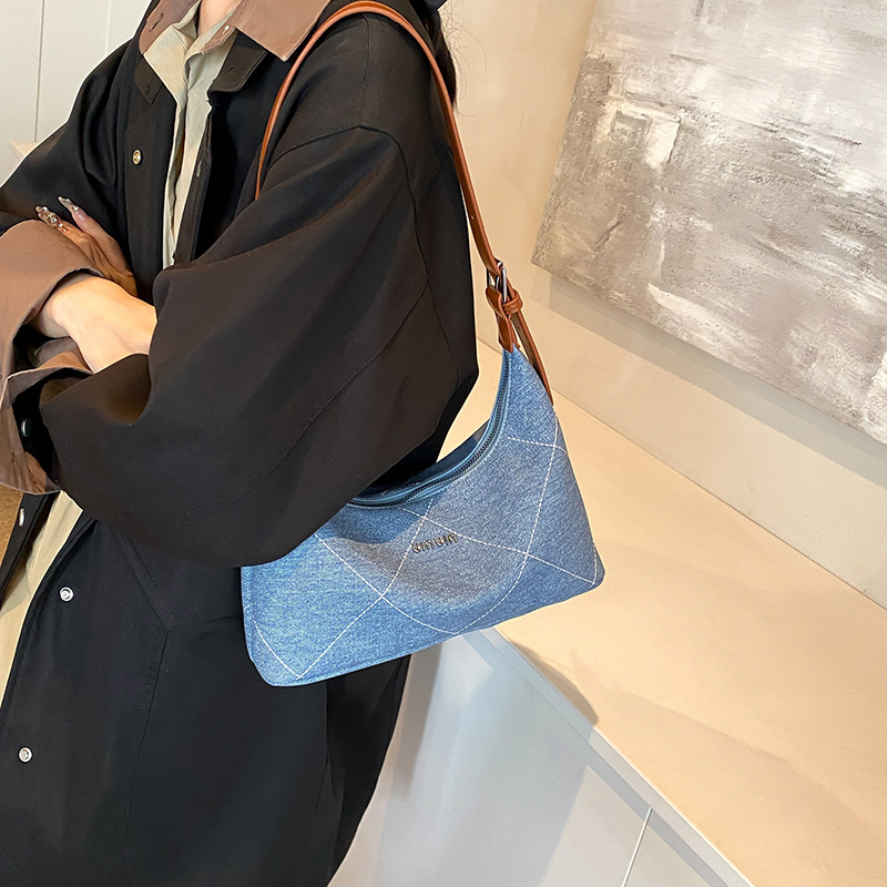 高级感菱格绣线单肩包包女早秋新款时尚大容量上班通勤腋下包