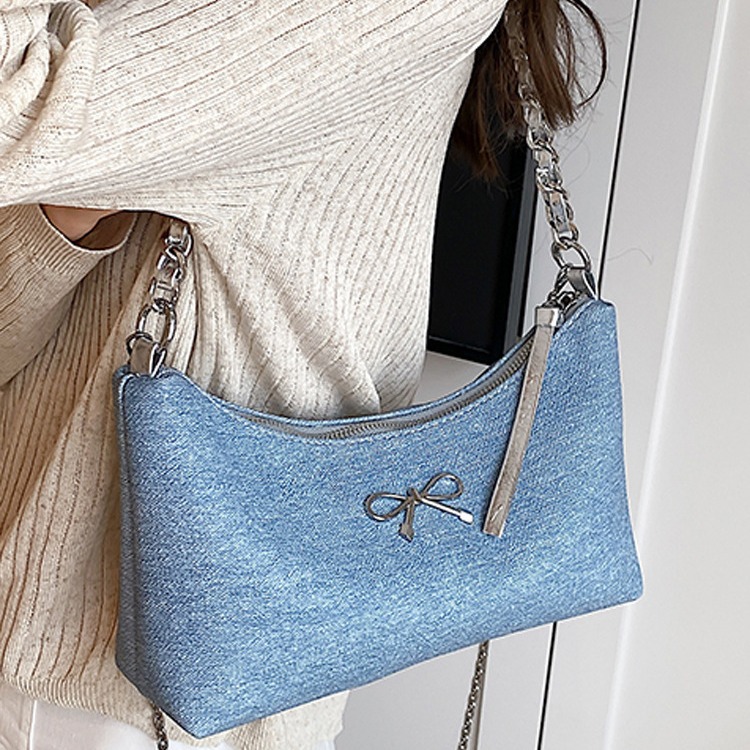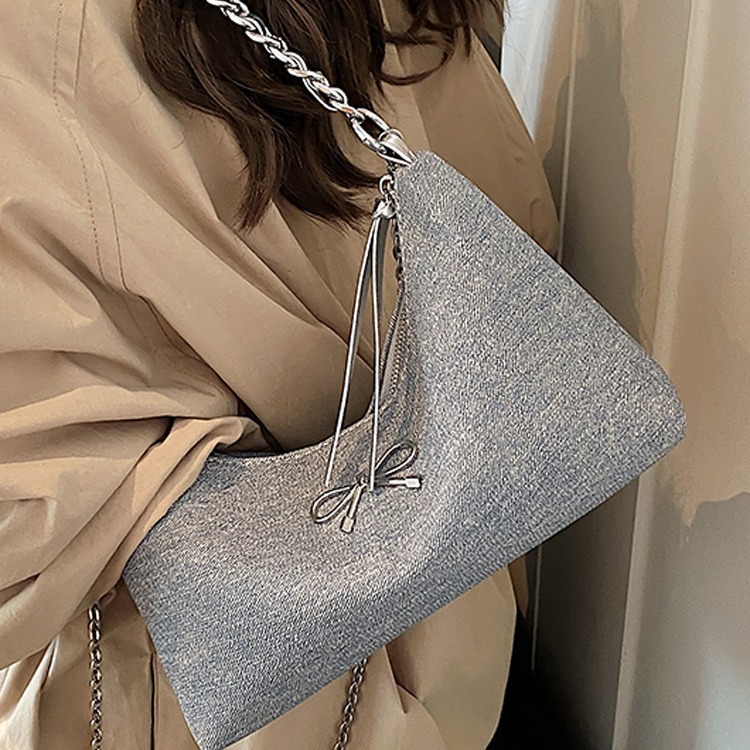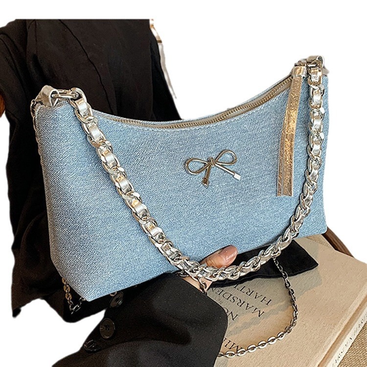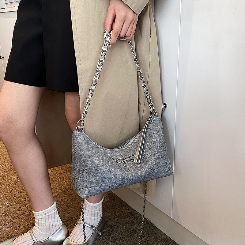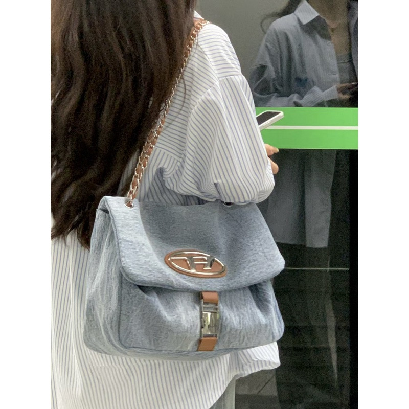 流浪包女新款大容量牛仔布单肩托特包斜挎链条百搭通勤叮当包