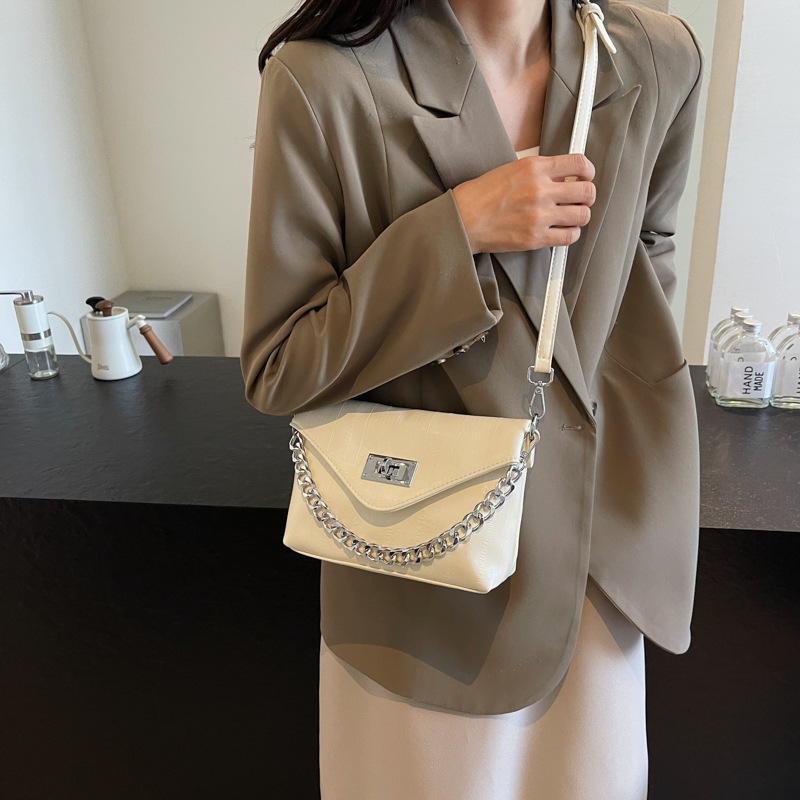 小众银色小包包女新款链条单肩斜挎包复古时髦锁扣邮差包