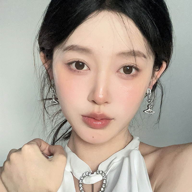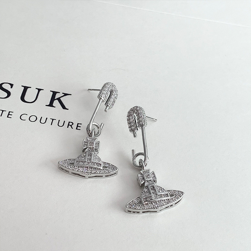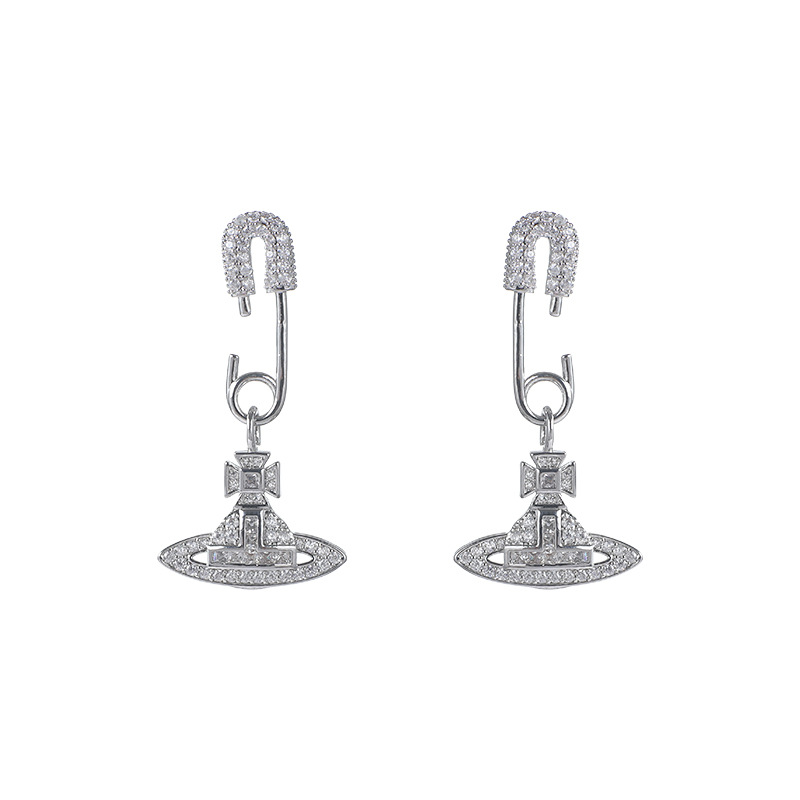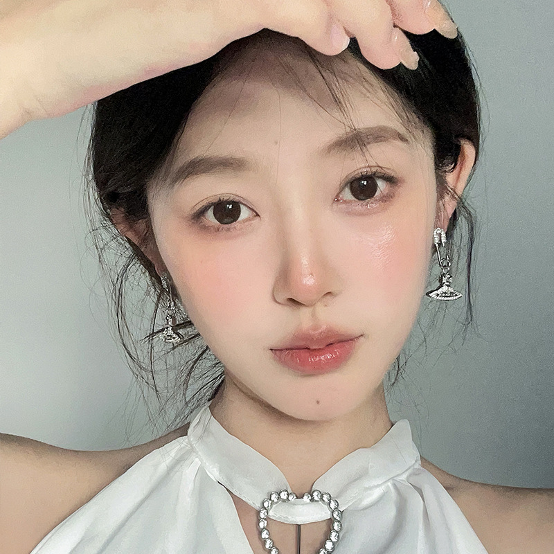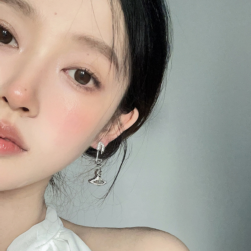 轻奢高级感锆石土星别针耳环独特小众设计感耳钉气质百搭满钻耳饰