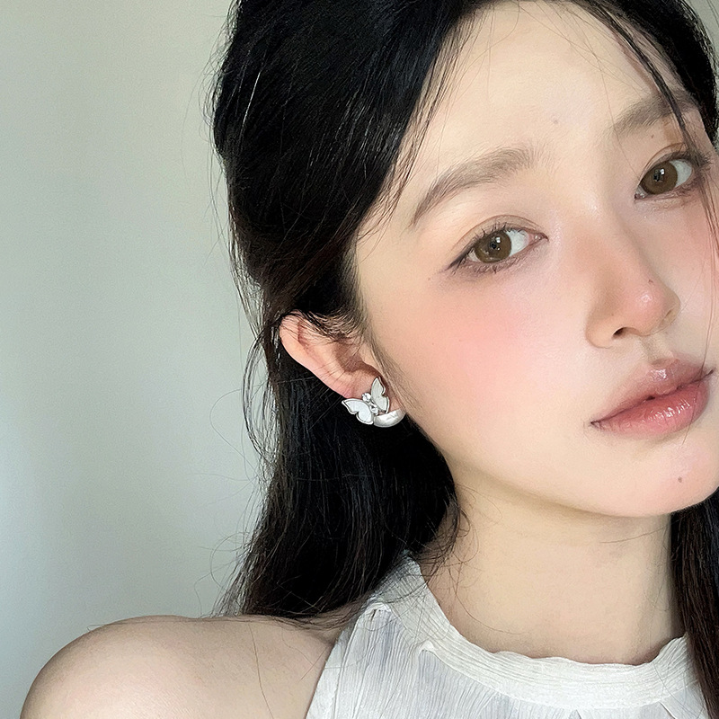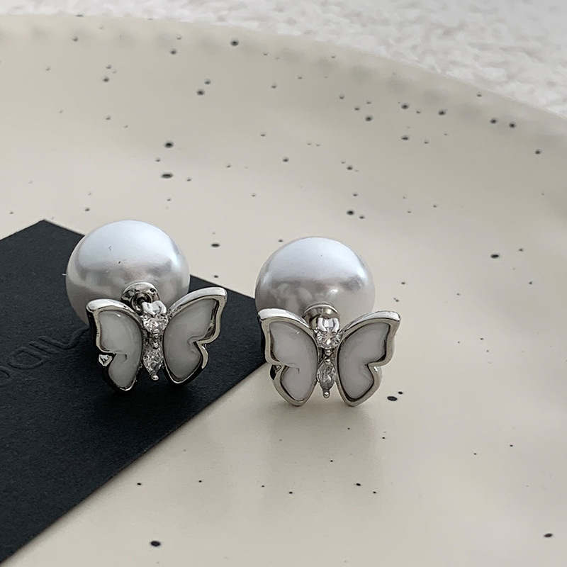 法式温柔贝母蝴蝶珍珠耳环女独特前后两戴耳钉气质轻奢高级感耳饰