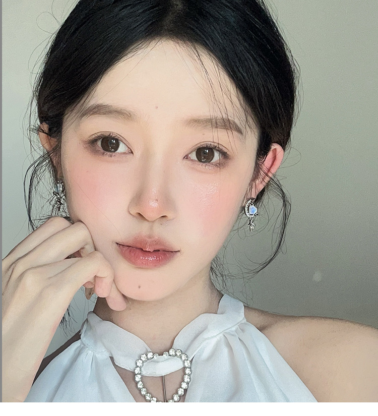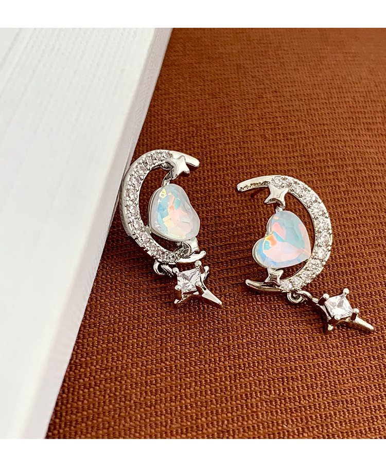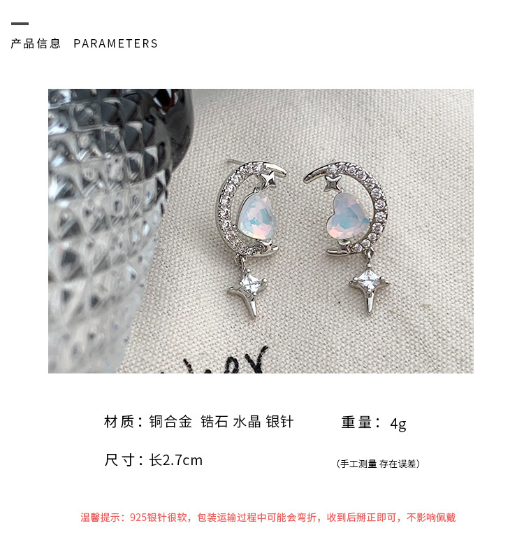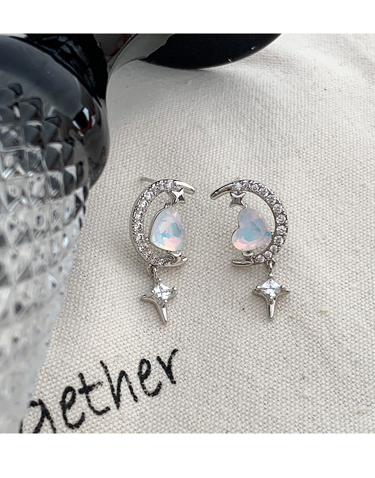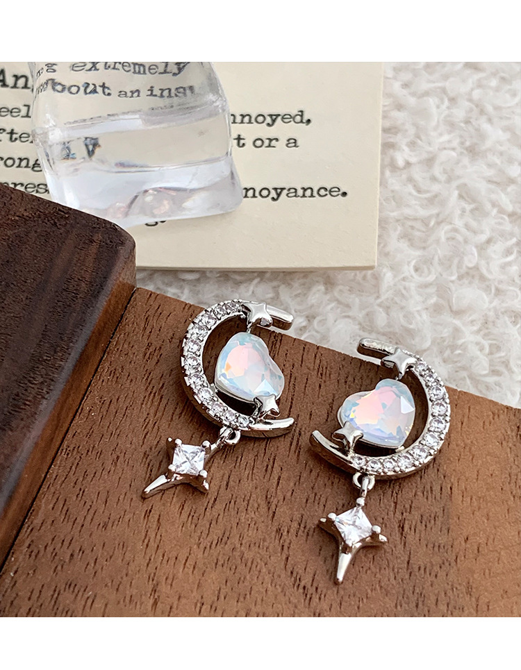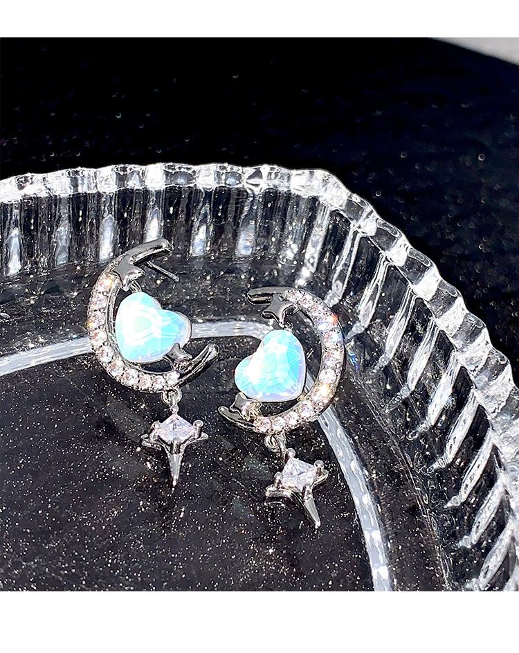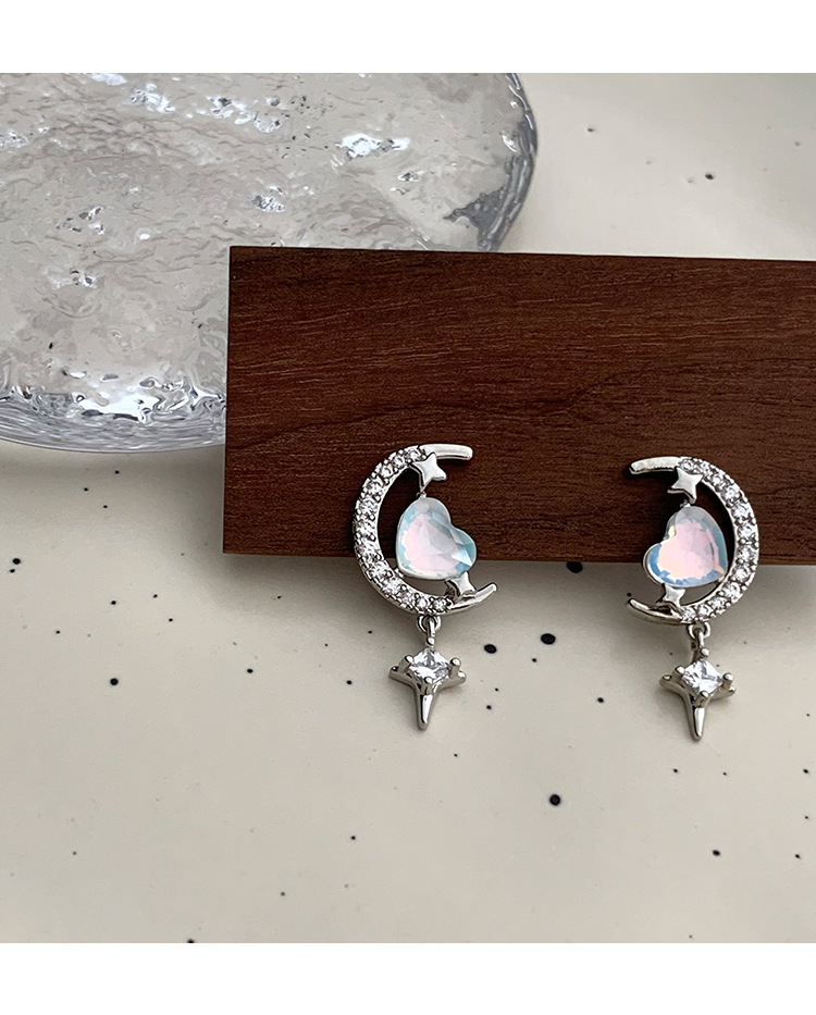 甜美气质星月爱心耳钉小众设计高级感锆石耳环年新款百搭耳饰