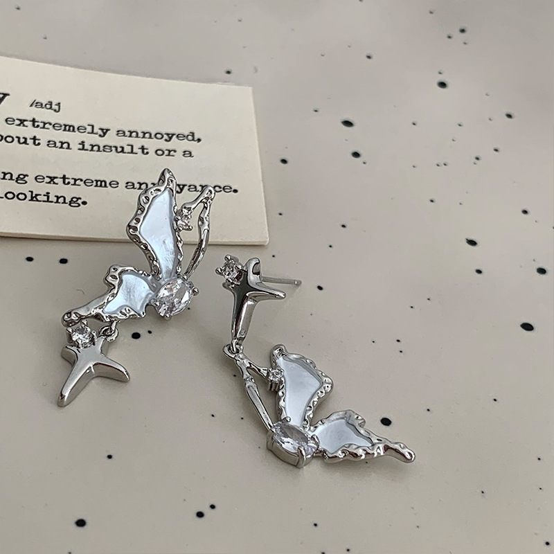 梦幻少女不对称蝴蝶耳环小众设计感精致耳钉年新款高级感耳饰