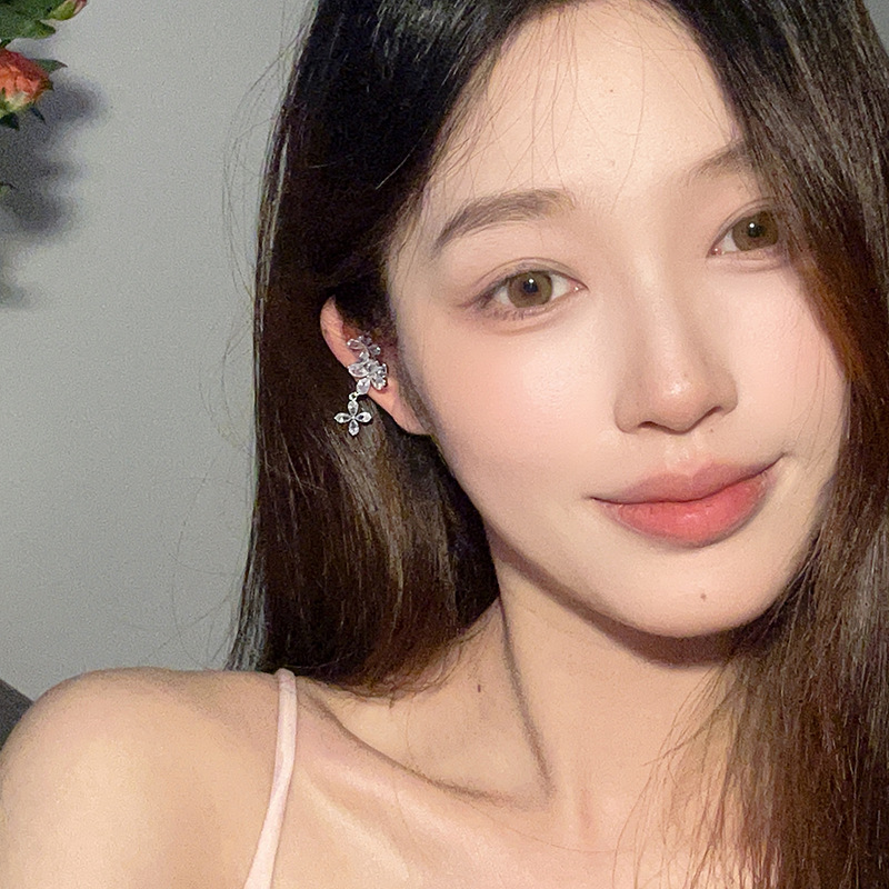 轻奢精致高级感锆石花朵磁吸耳夹小众百搭无耳洞耳骨夹年新款
