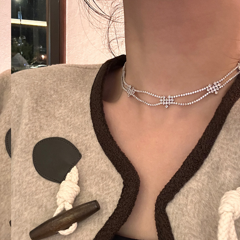 纯欲超闪锆石爱心项链choker轻奢高级感短款双层锁骨链设计感颈链
