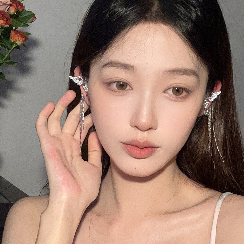 高级感蝴蝶流苏耳夹女轻奢设计感无耳洞耳骨夹年新款长款耳饰