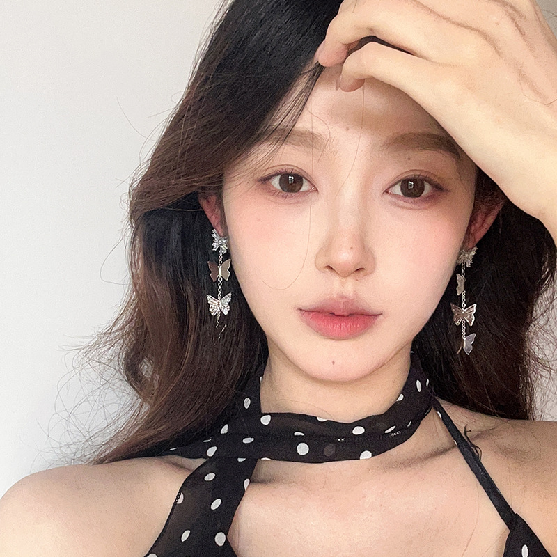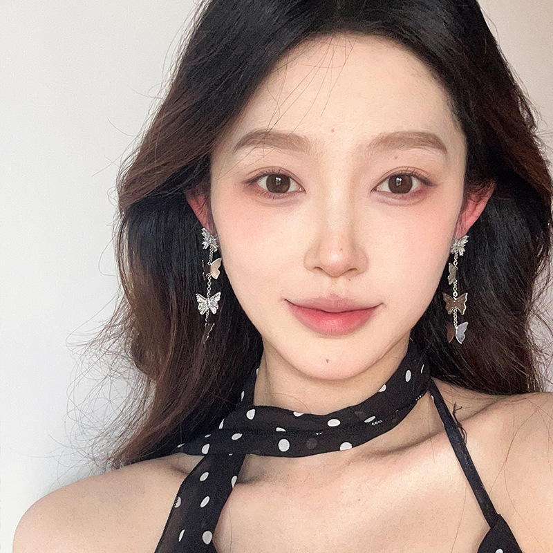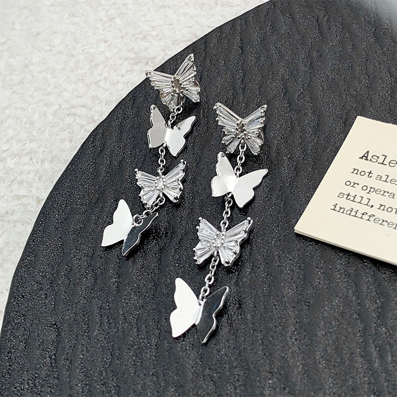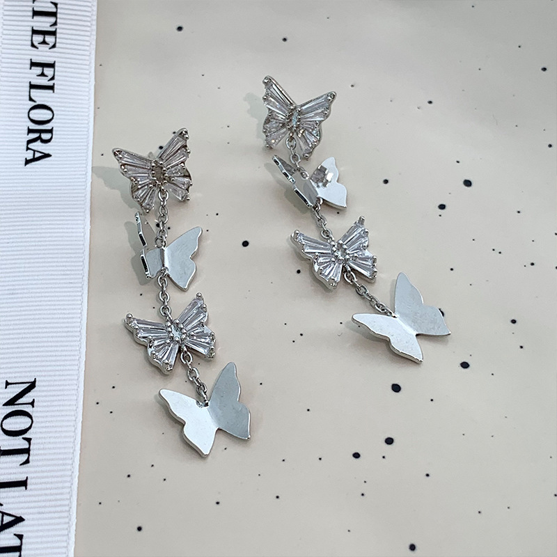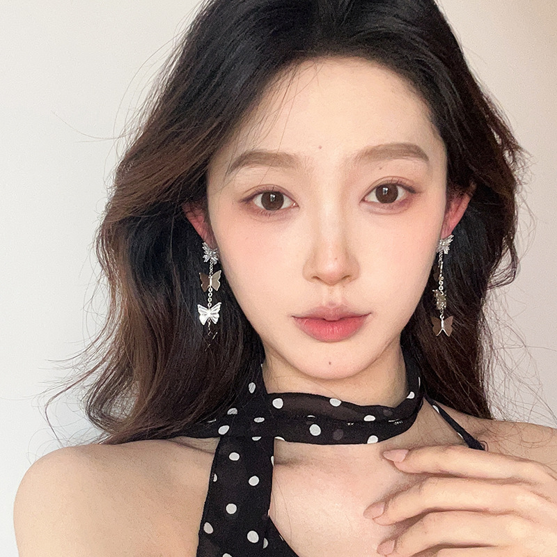 湖光水影蝴蝶锆石耳环气质高级感长款耳坠年新款轻奢百搭耳饰
