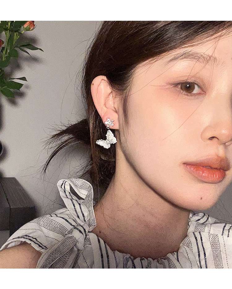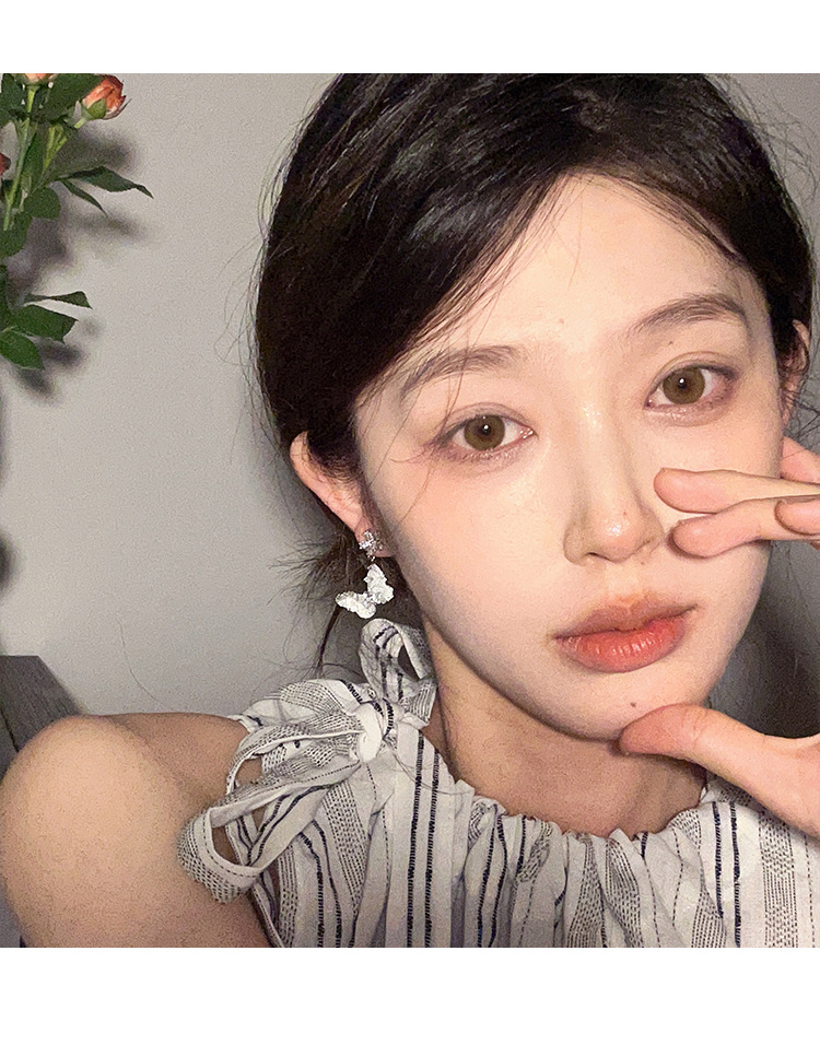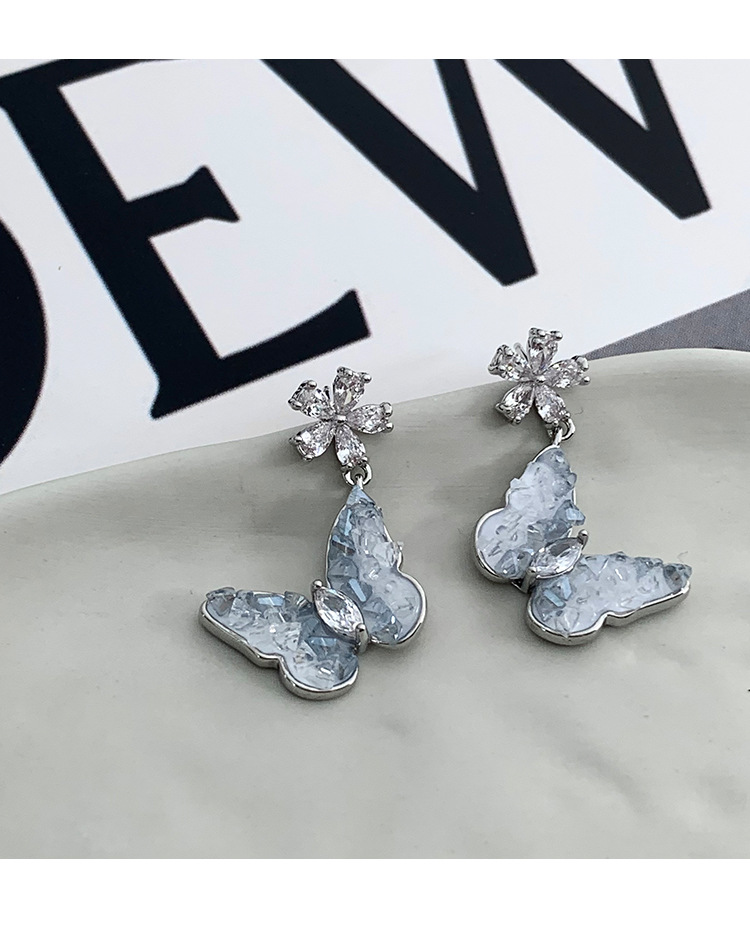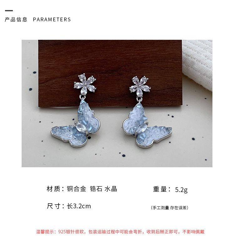 冰透梦蝶清冷风蓝色水晶蝴蝶耳环小众气质高级感耳钉年新款潮