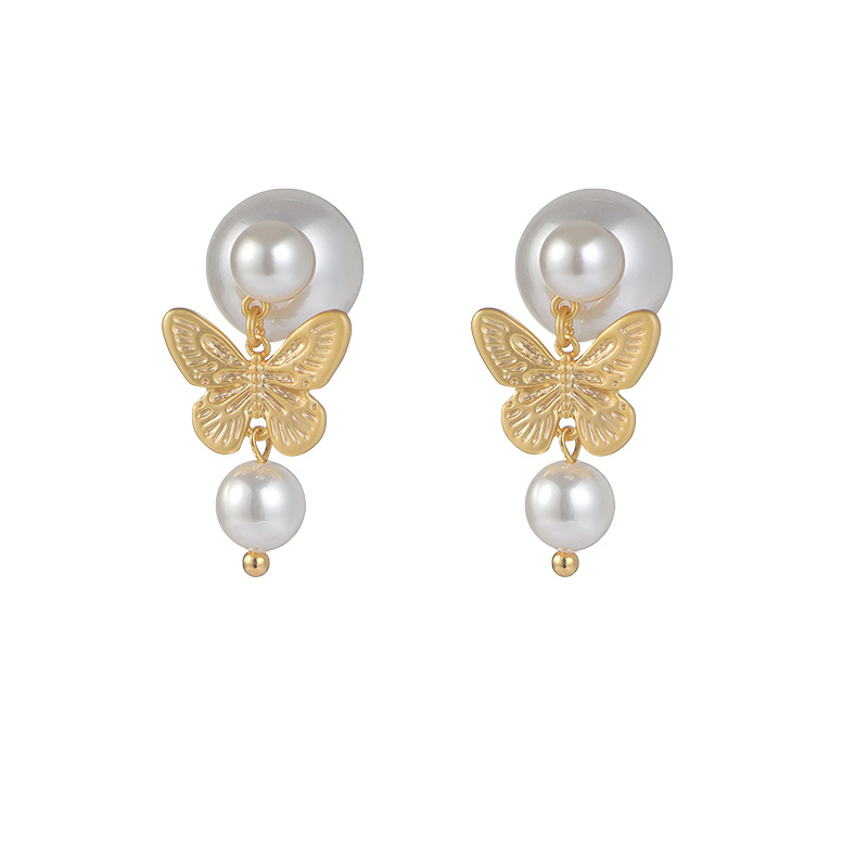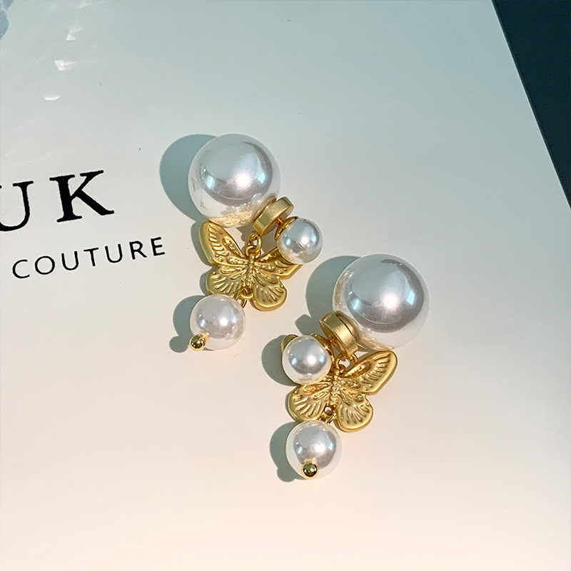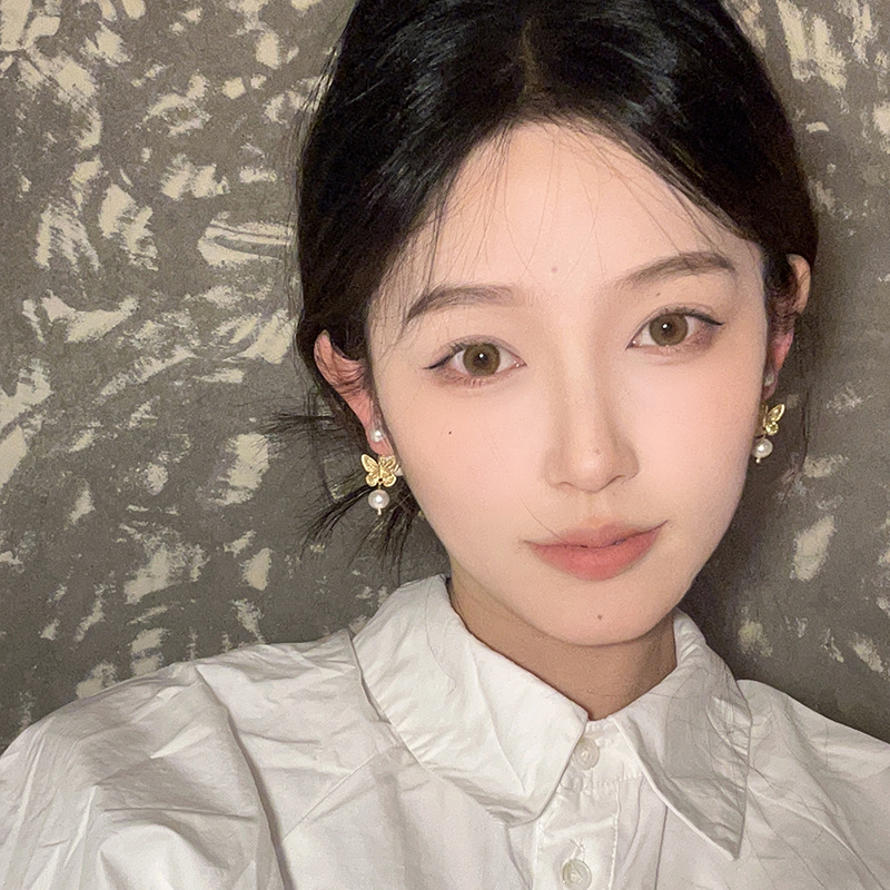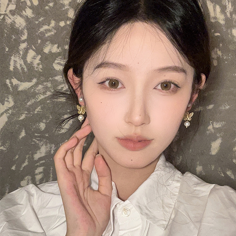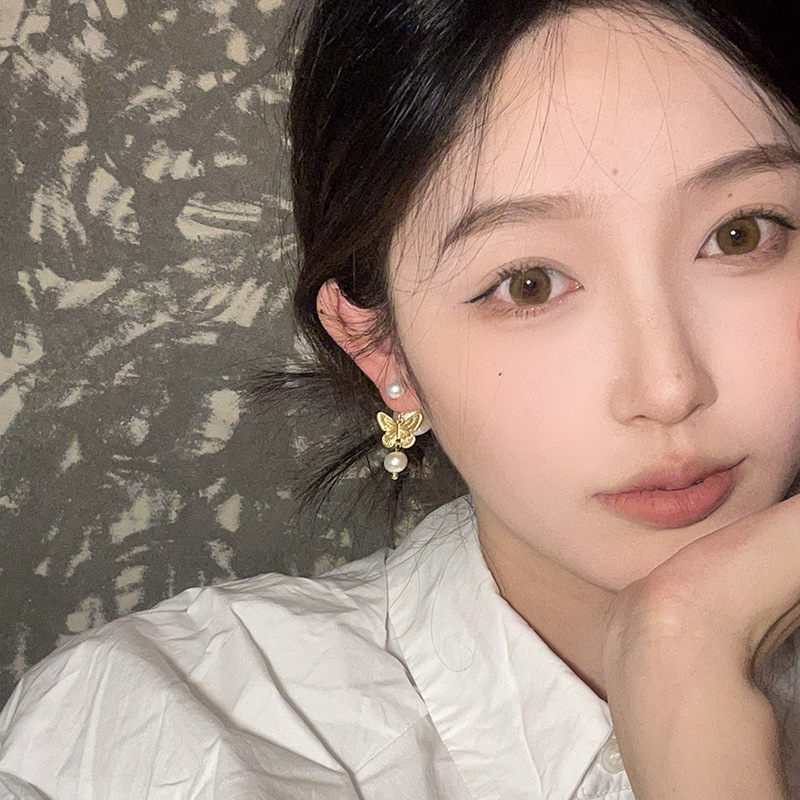 气质轻奢蝴蝶珍珠耳环小众高级感百搭耳坠年新款后挂式耳饰女
