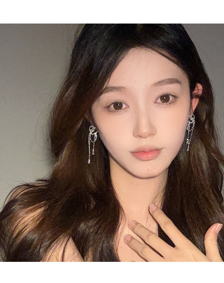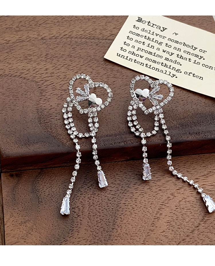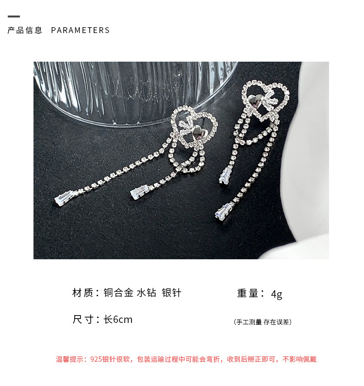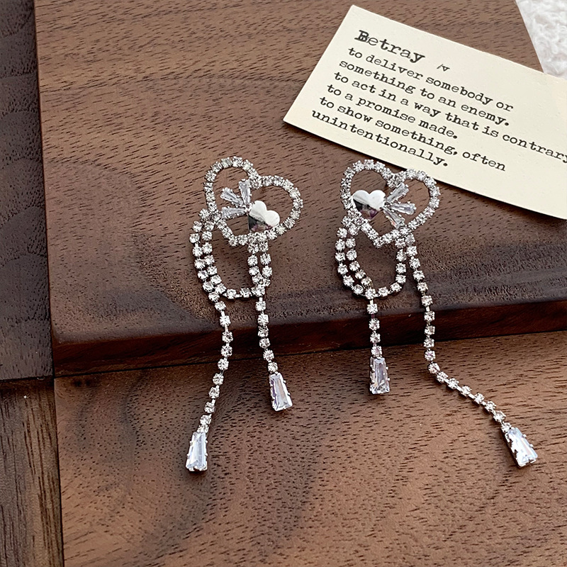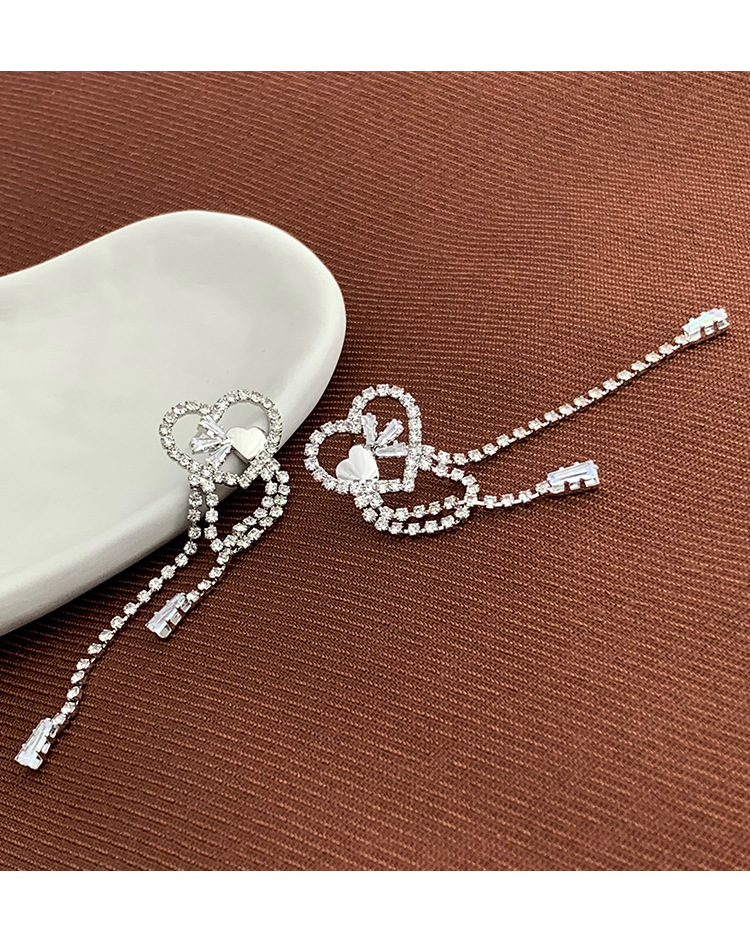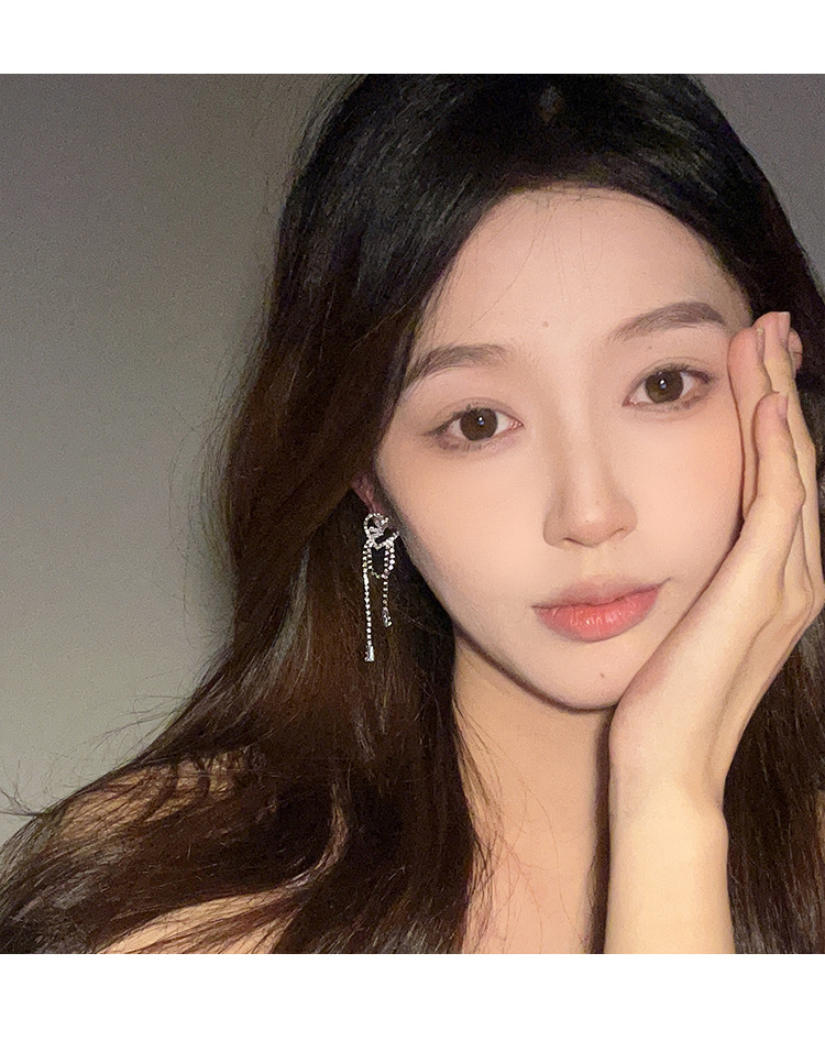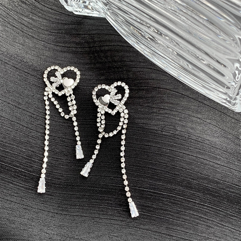 闪闪满钻爱心流苏耳环轻奢高级感耳钉女年新款气质氛围感耳饰