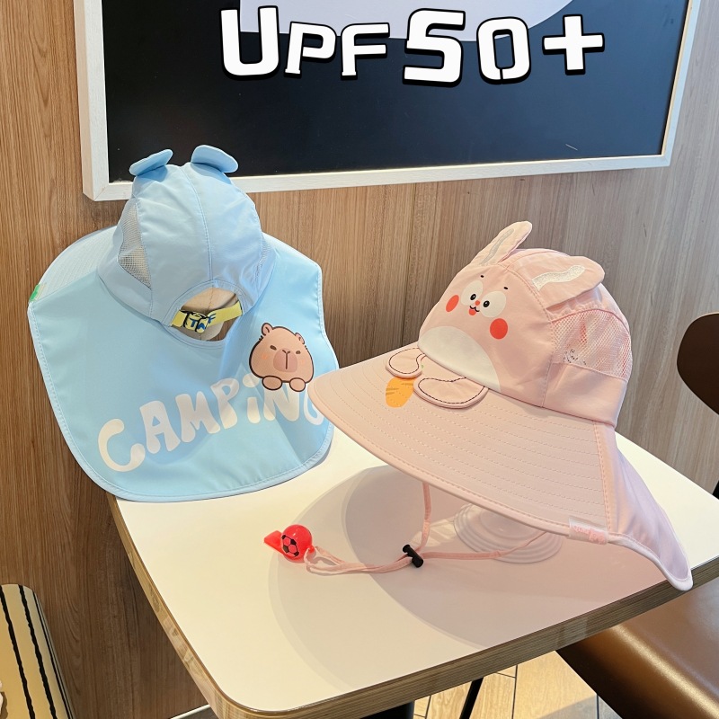 儿童遮阳披肩帽夏天超萌兔子男女童防晒渔夫帽防紫外线宝宝太阳帽