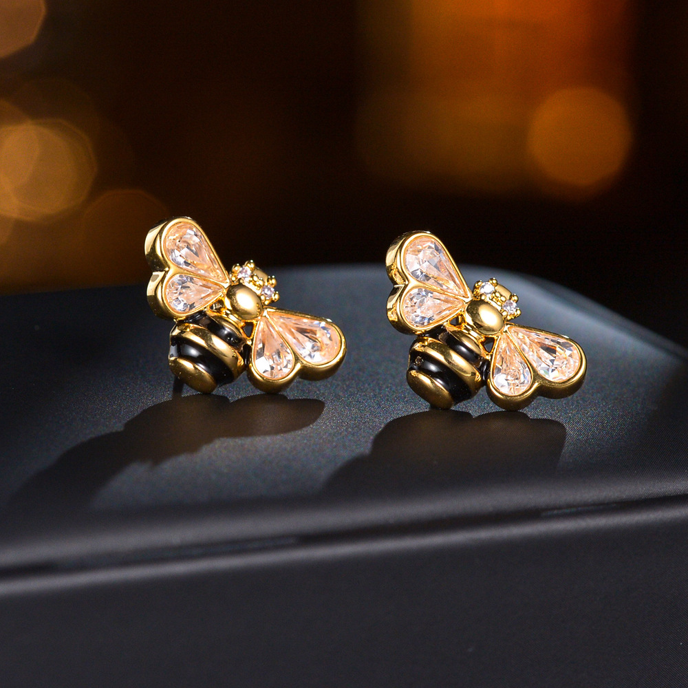高版本桃心耳堵+925银 新款通勤超闪锆石镶嵌珐琅釉彩绘可爱小蜜