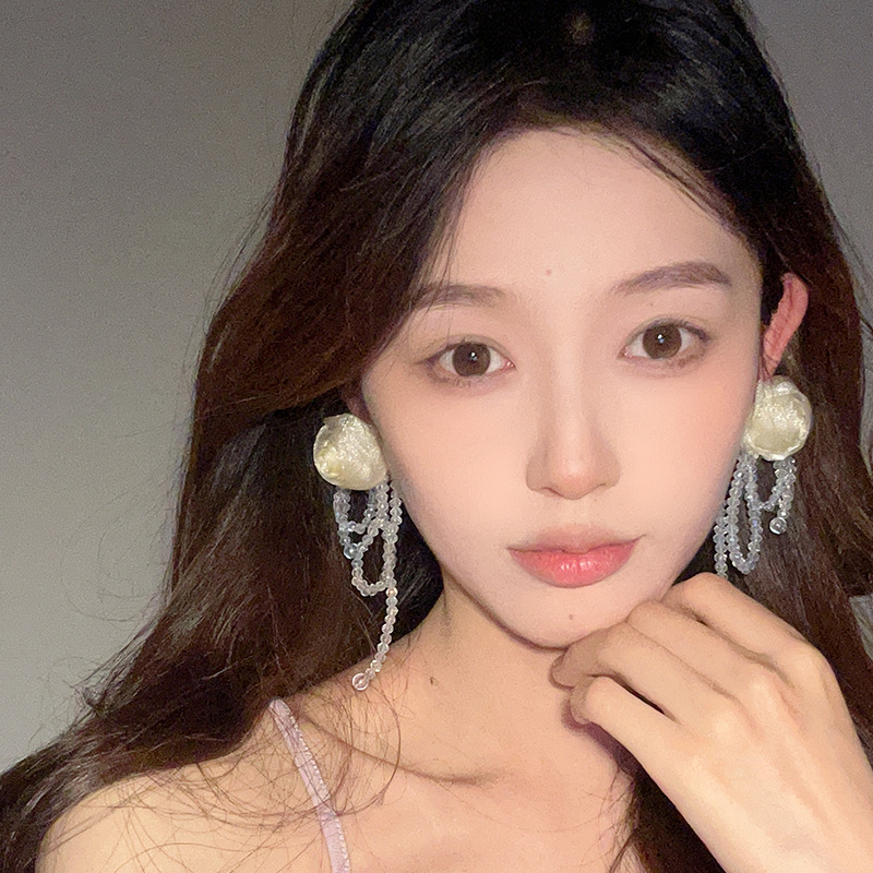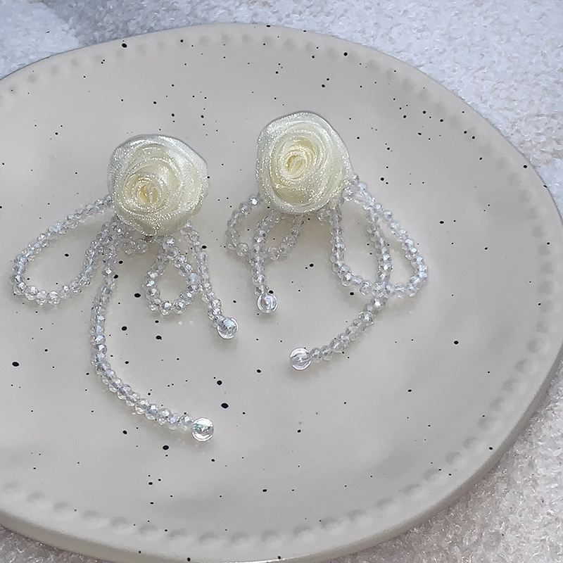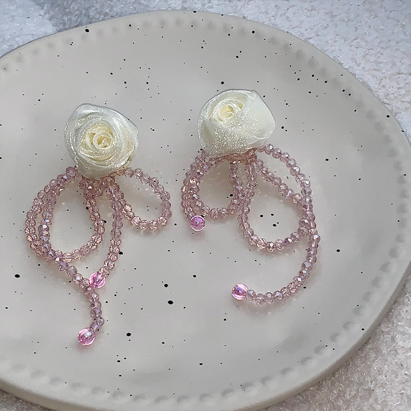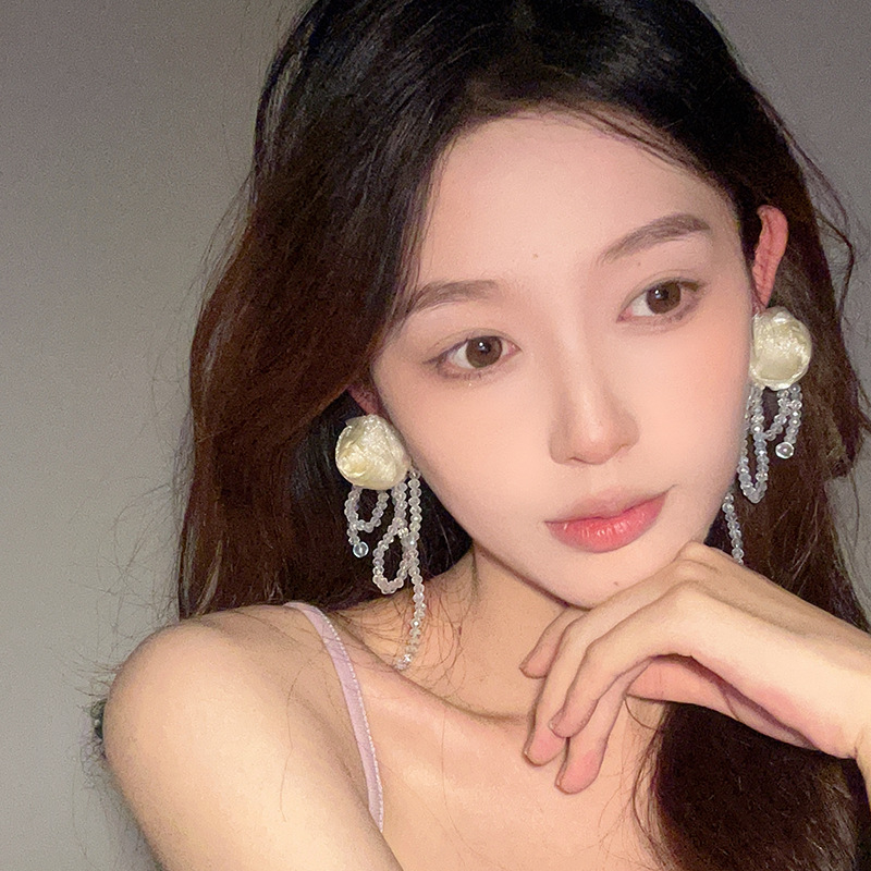 玫瑰水晶流苏耳环夏日气质设计感夸张长款耳环年新款小众耳饰