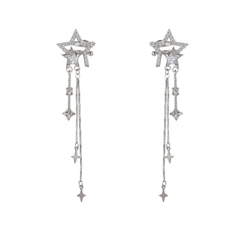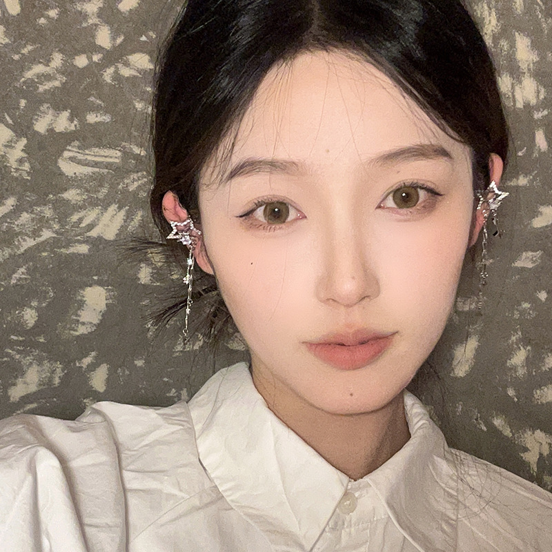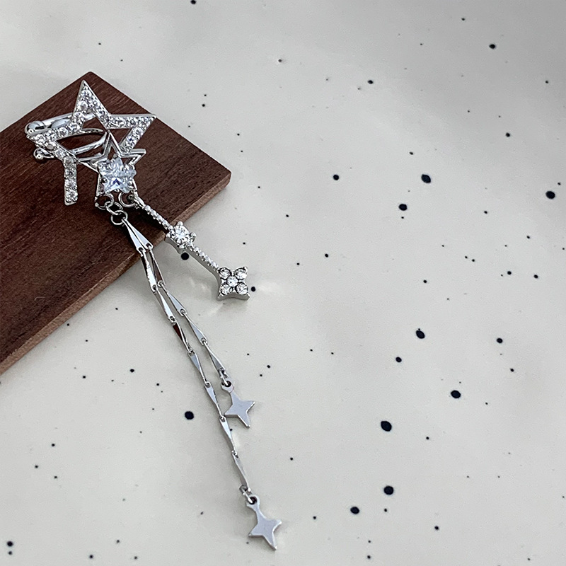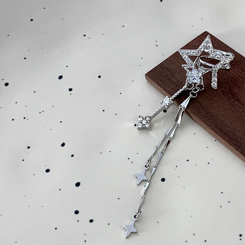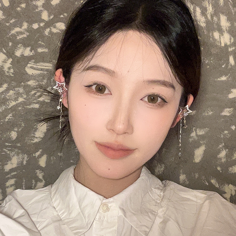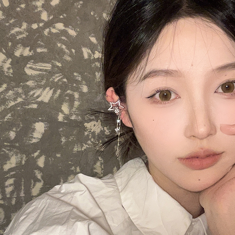 轻奢高级感锆石星星流苏耳骨夹无耳洞耳饰气质轻奢小众高级感耳夹
