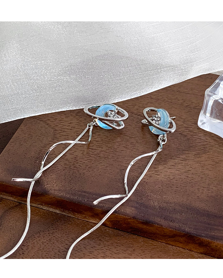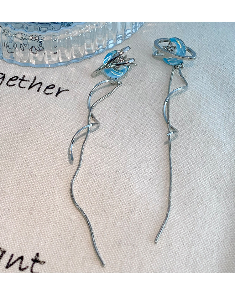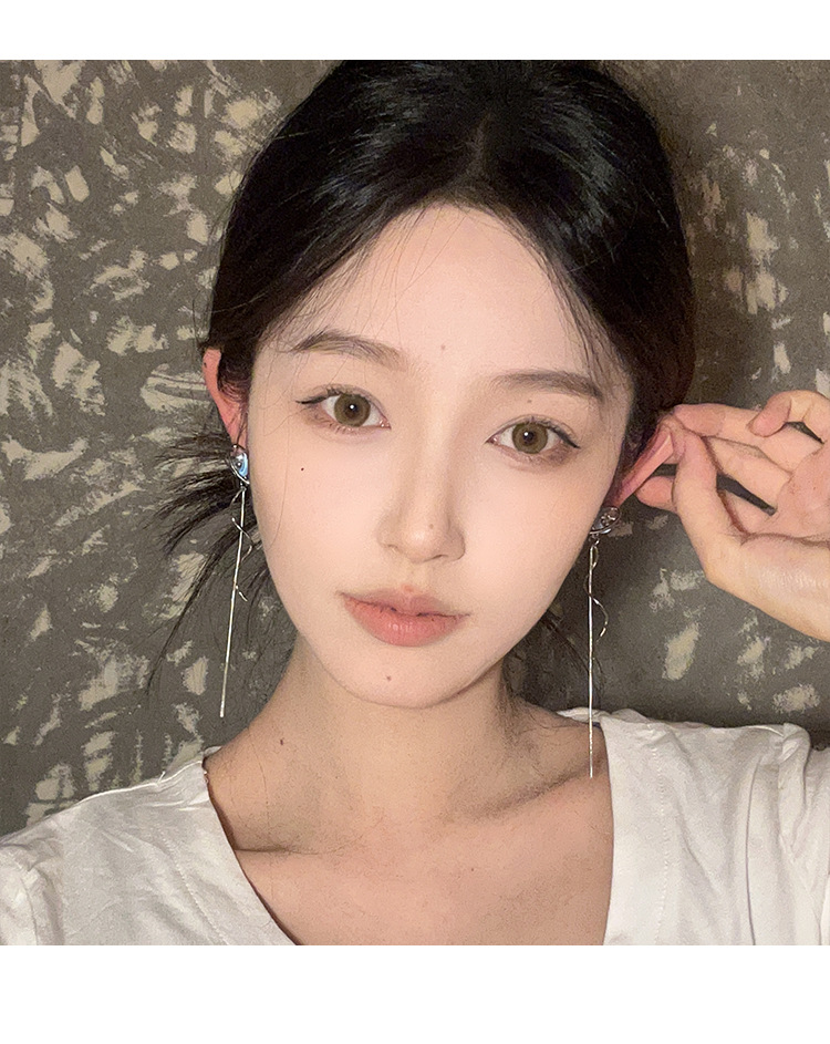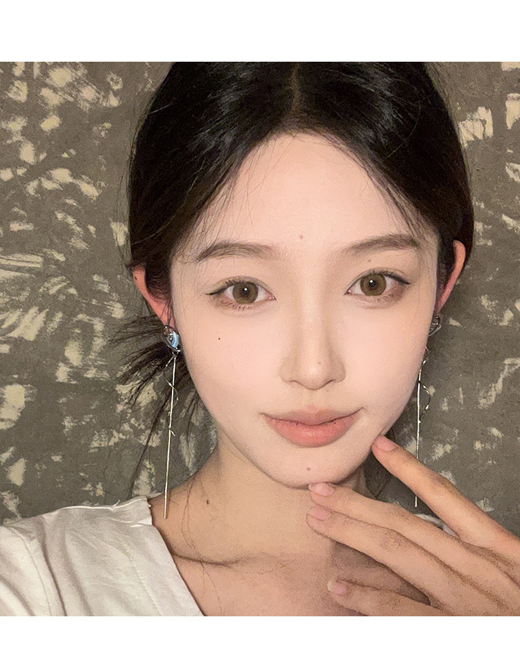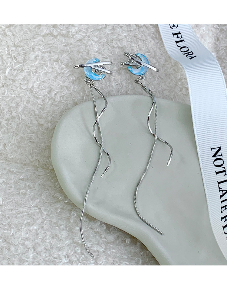 气质仙气蓝色月亮流苏耳环女小众设计感高级感耳钉百搭清冷感耳饰