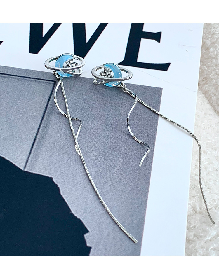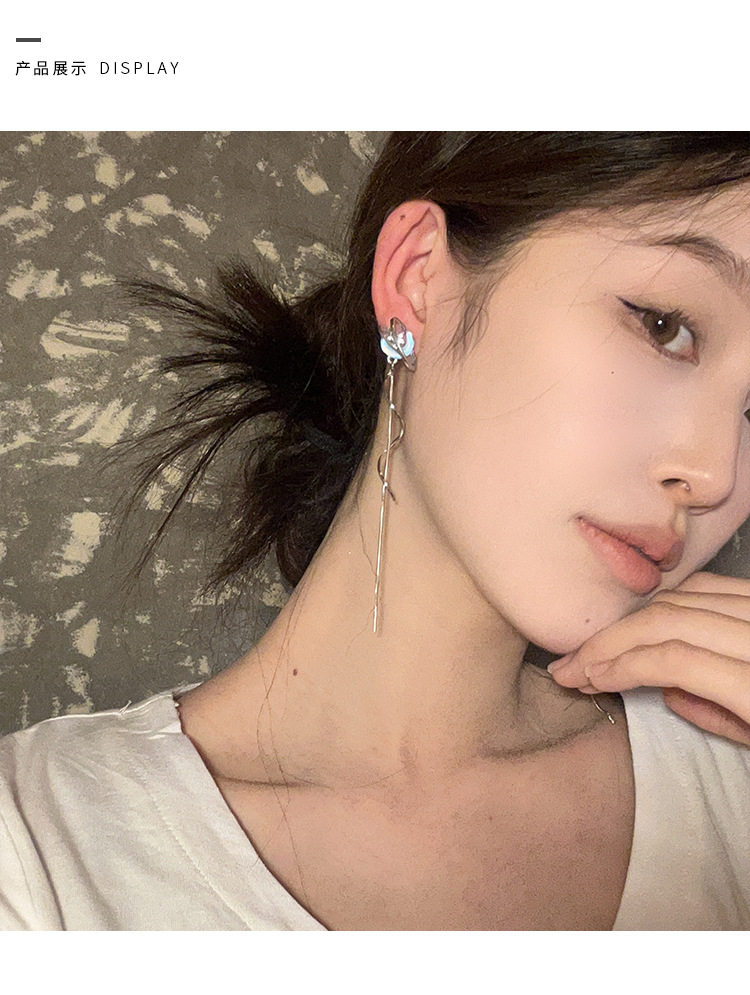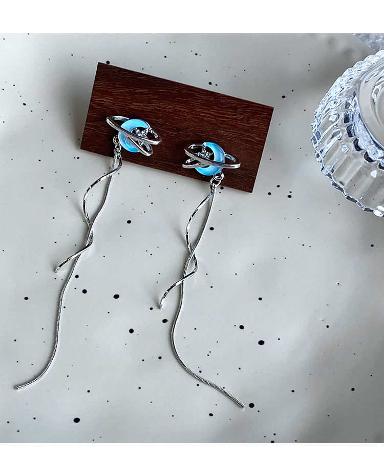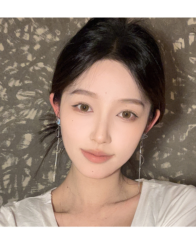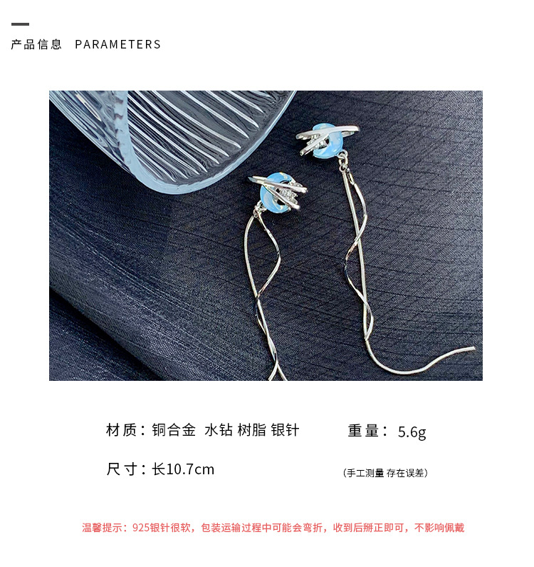 气质仙气蓝色月亮流苏耳环女小众设计感高级感耳钉百搭清冷感耳饰