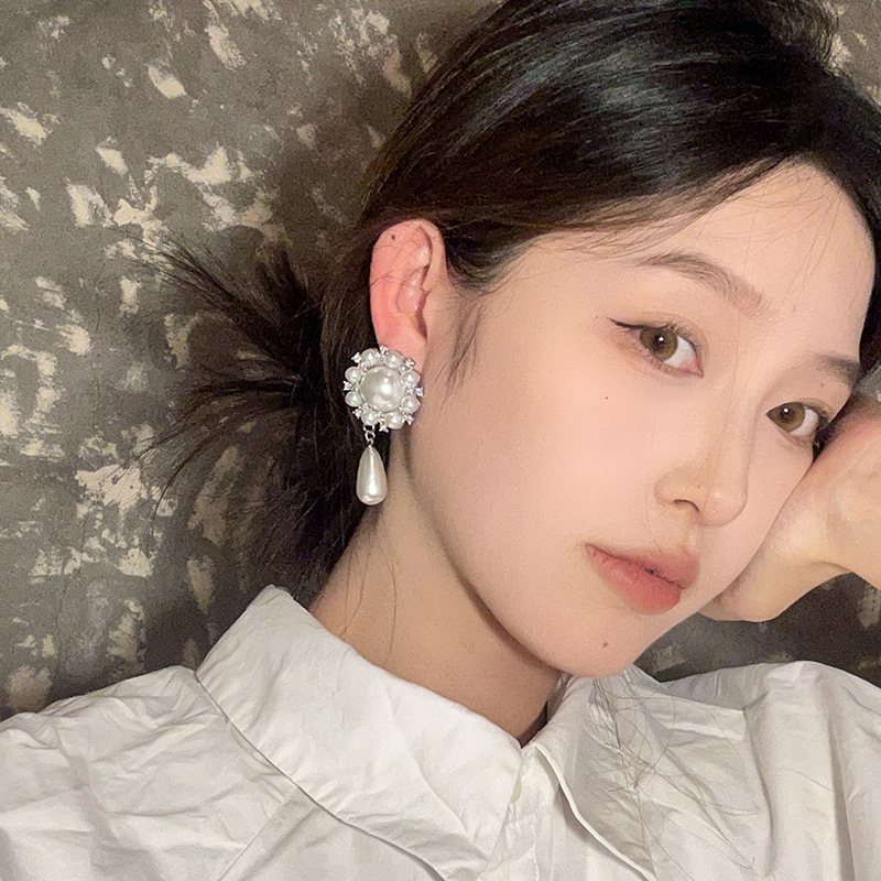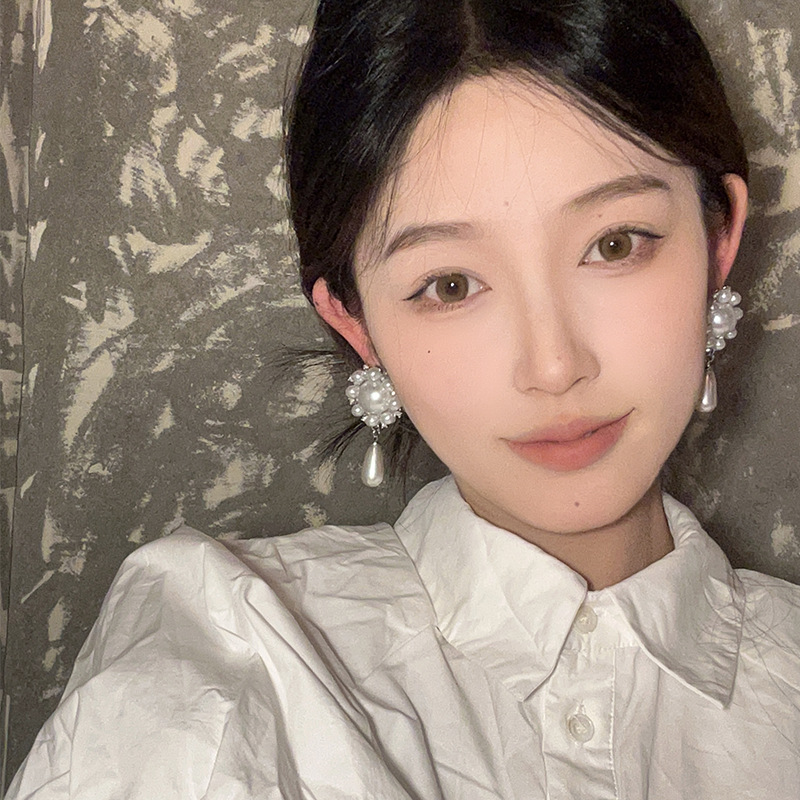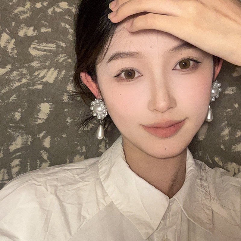 法式气质高级感水滴珍珠吊坠耳环独特小众夸张耳坠设计感轻奢耳饰
