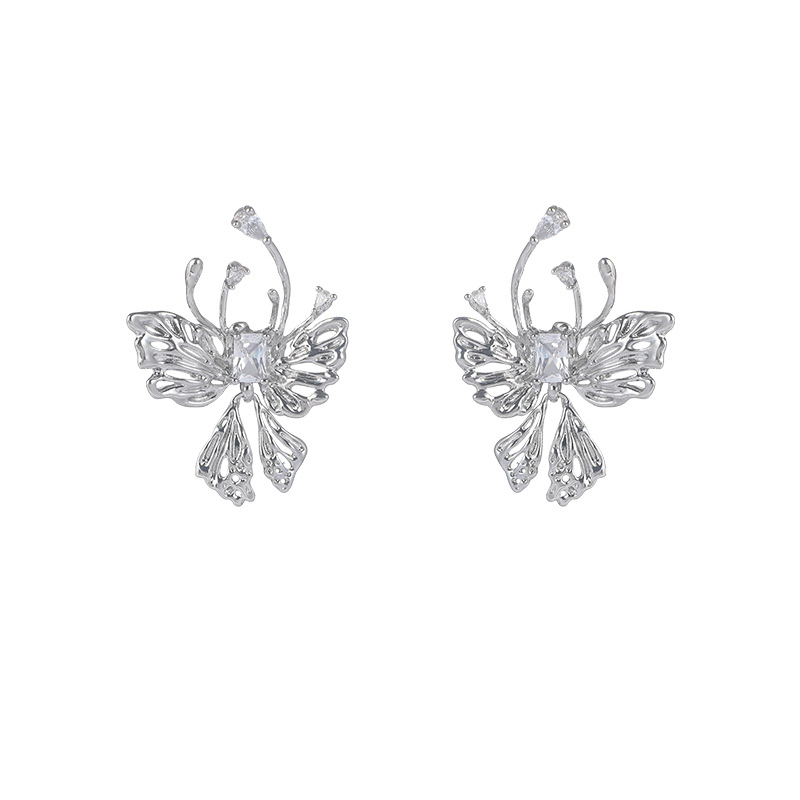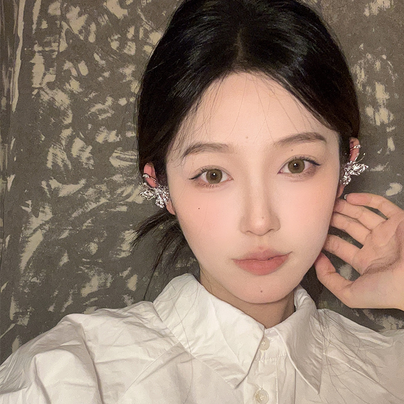 小众设计感镂空蝴蝶耳夹气质轻奢高级感满锆耳骨夹独特无耳洞耳饰