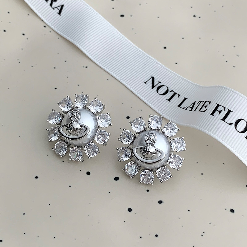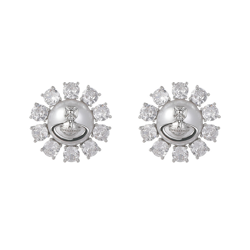 轻奢高级感锆石土星圆形珍珠耳钉独特小众设计感耳环气质百搭耳饰