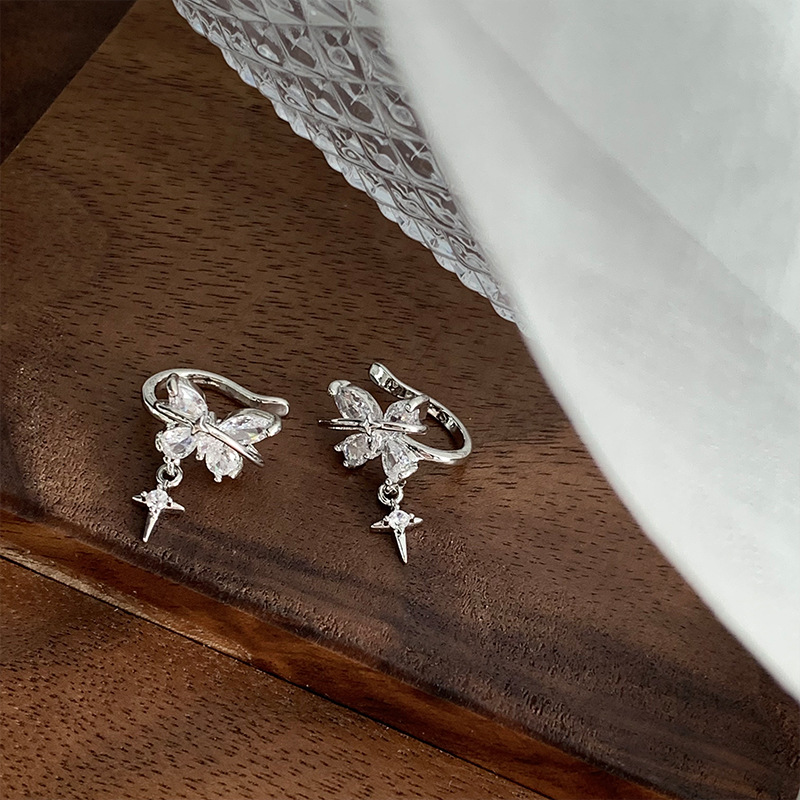 轻奢气质锆石蝴蝶耳夹女精致小巧超闪无耳洞耳骨夹高级感星星耳饰