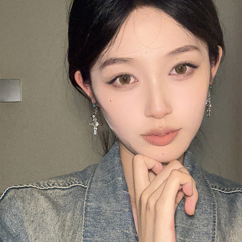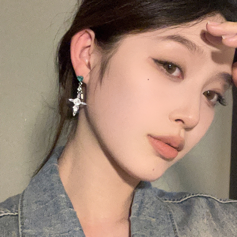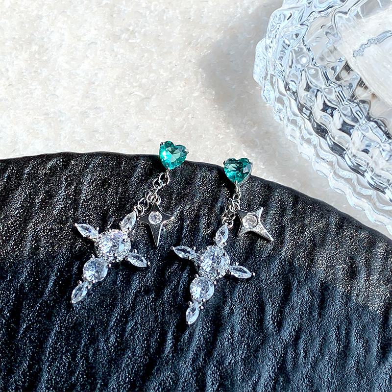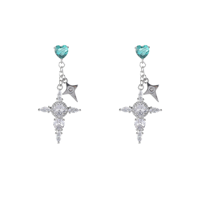 气质轻奢微镶爱心锆石十字架耳环年新款小众高级感耳钉耳饰女