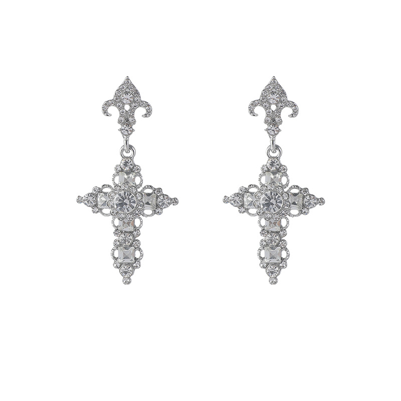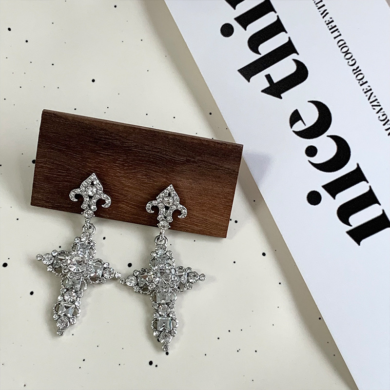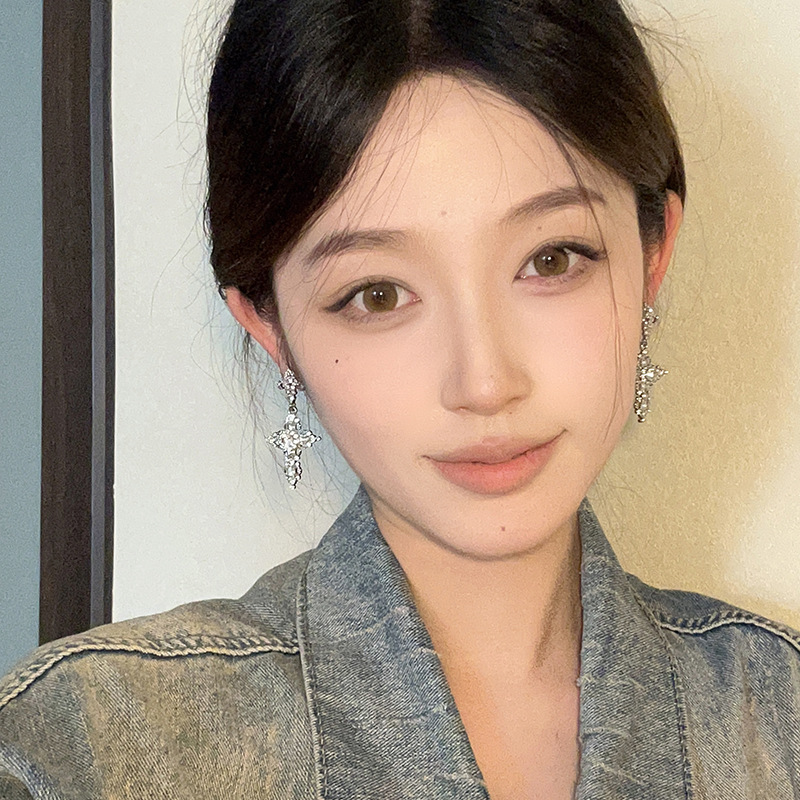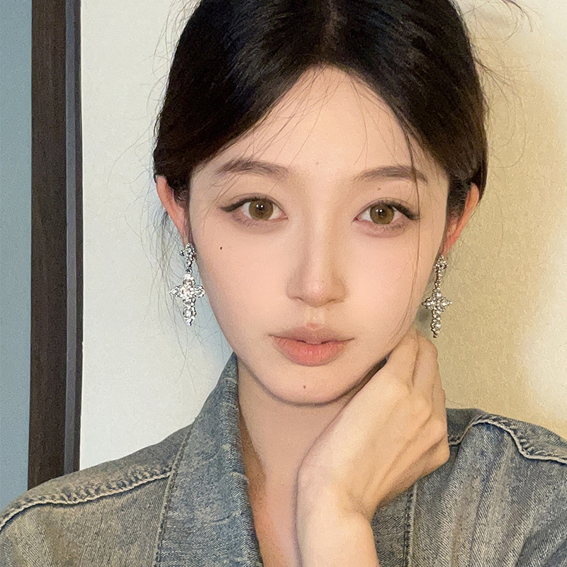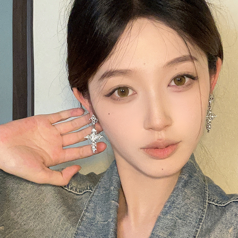 气质精致超闪水钻十字架耳环女小众高级感耳钉年新款百搭耳饰