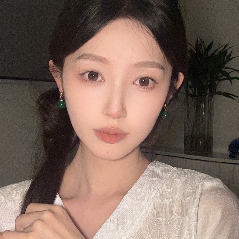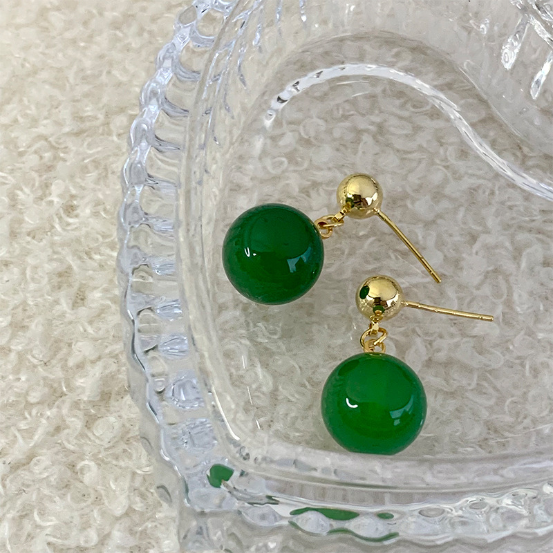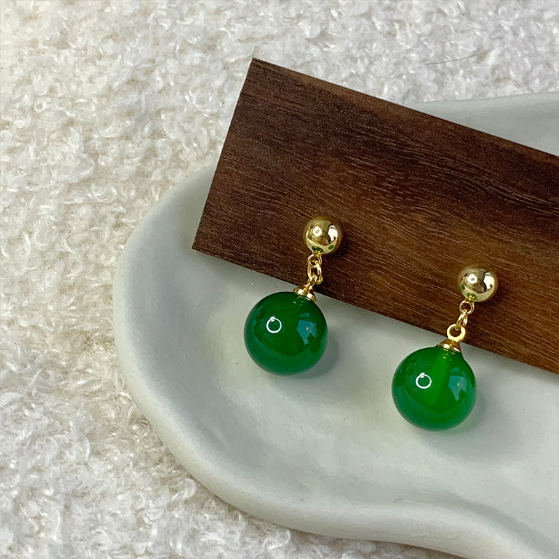 新中式绿色圆球耳环气质复古独特高级感耳钉国风清冷感耳饰女