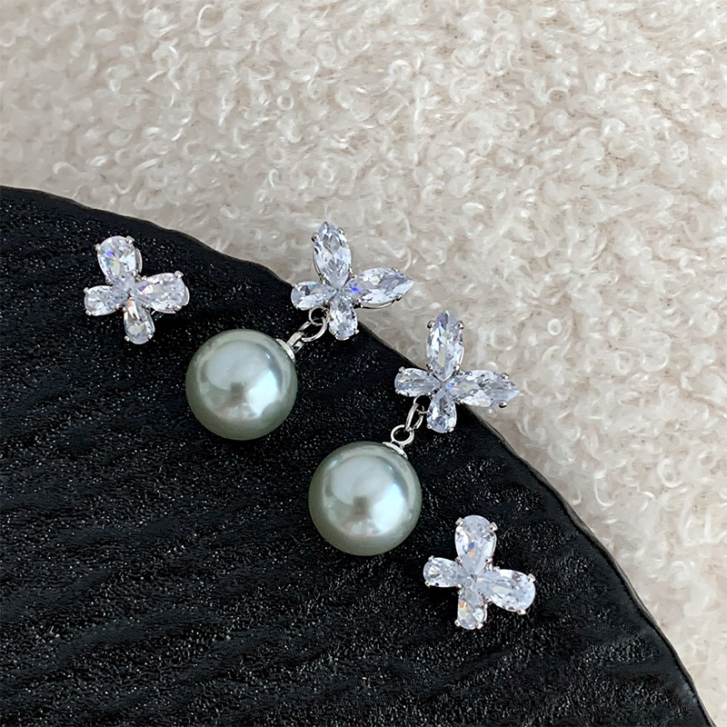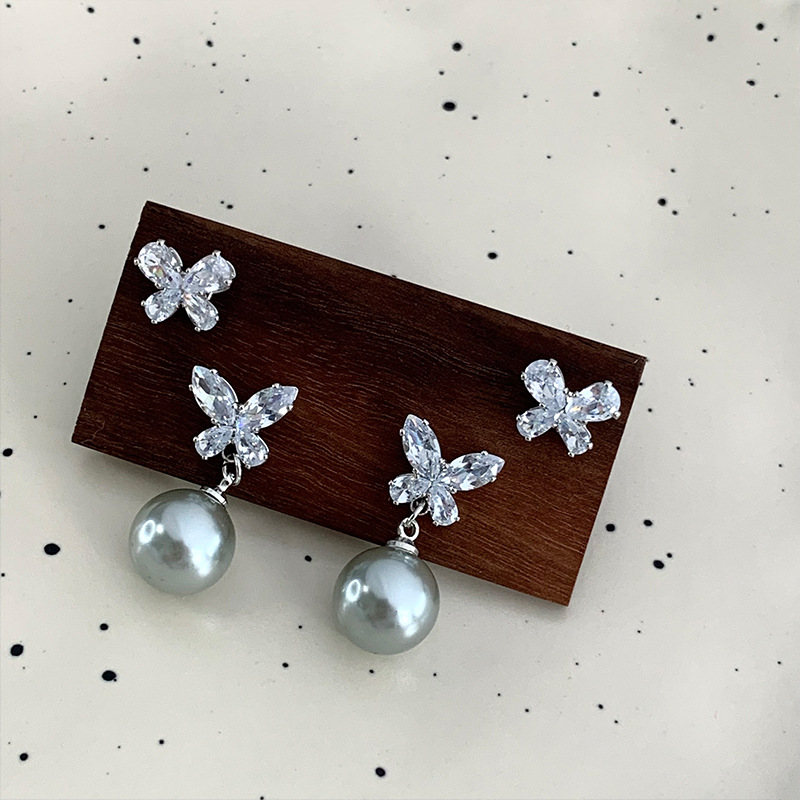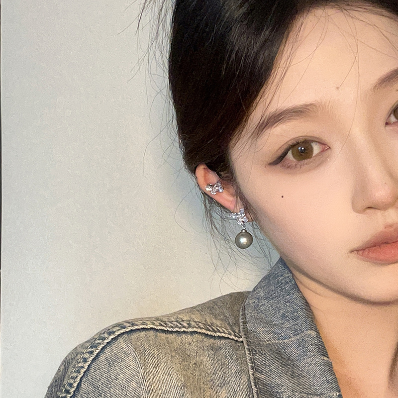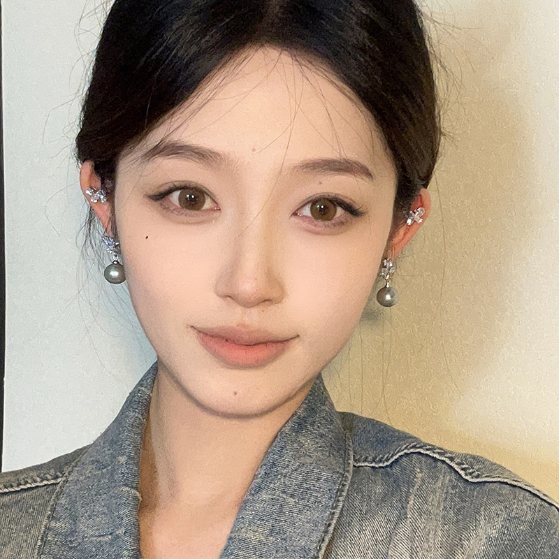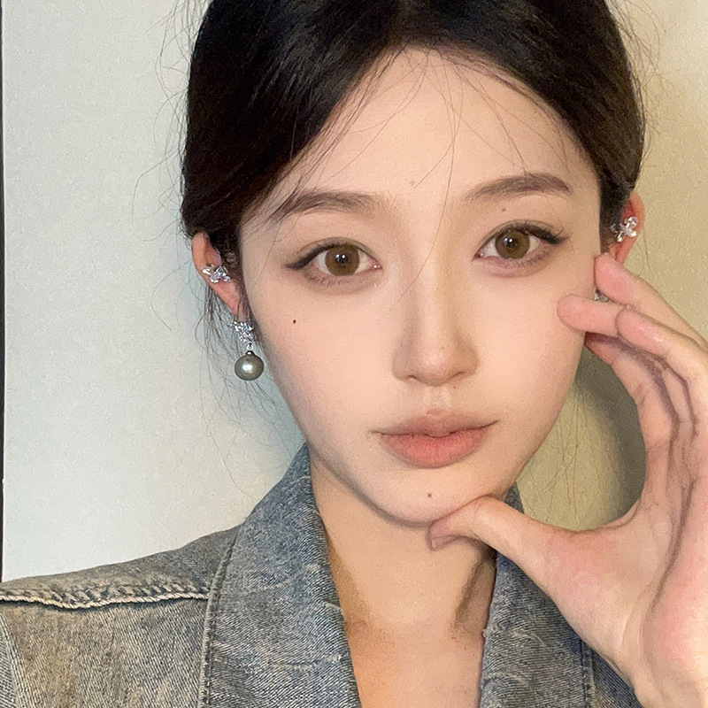 轻奢气质闪钻蝴蝶珍珠耳环磁吸耳骨夹高级感小众耳饰年新款女