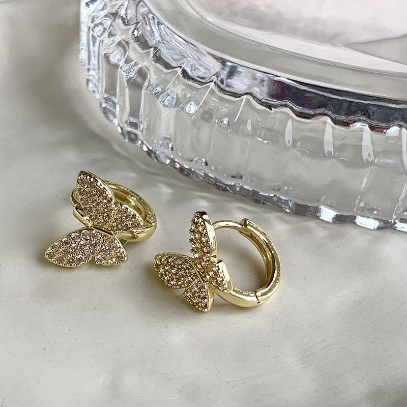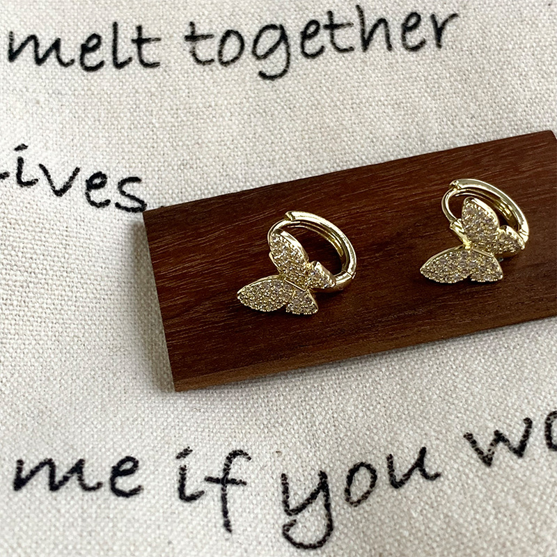 气质轻奢闪锆蝴蝶耳圈简约小巧耳环年新款小众迷你耳扣耳饰女