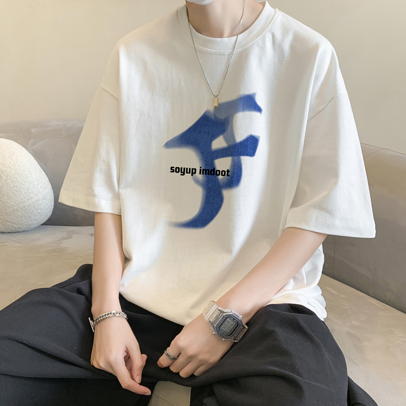 220克港风宽松潮流休闲短袖t恤男夏季薄款半袖个性印花上衣男式T