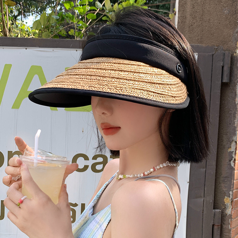 夏季大帽檐草编空顶帽女新款防紫外线遮阳帽户外出游沙滩太阳帽子