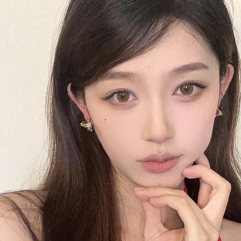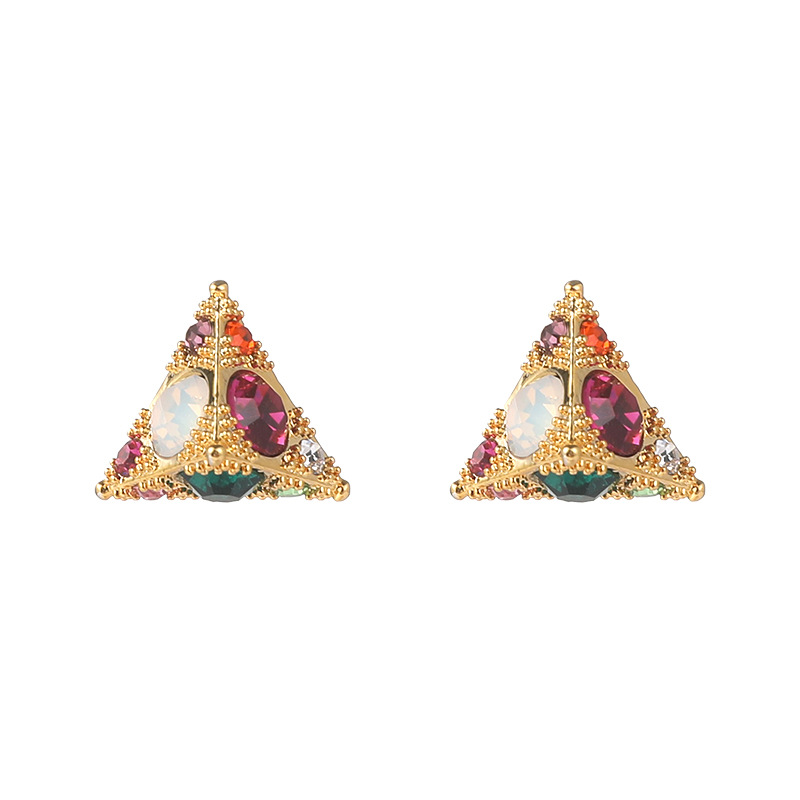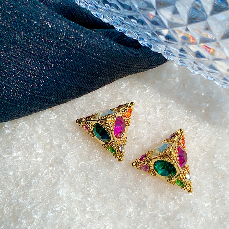 复古宫廷风几何三角形彩色锆石耳钉小众设计感轻奢耳环年新款