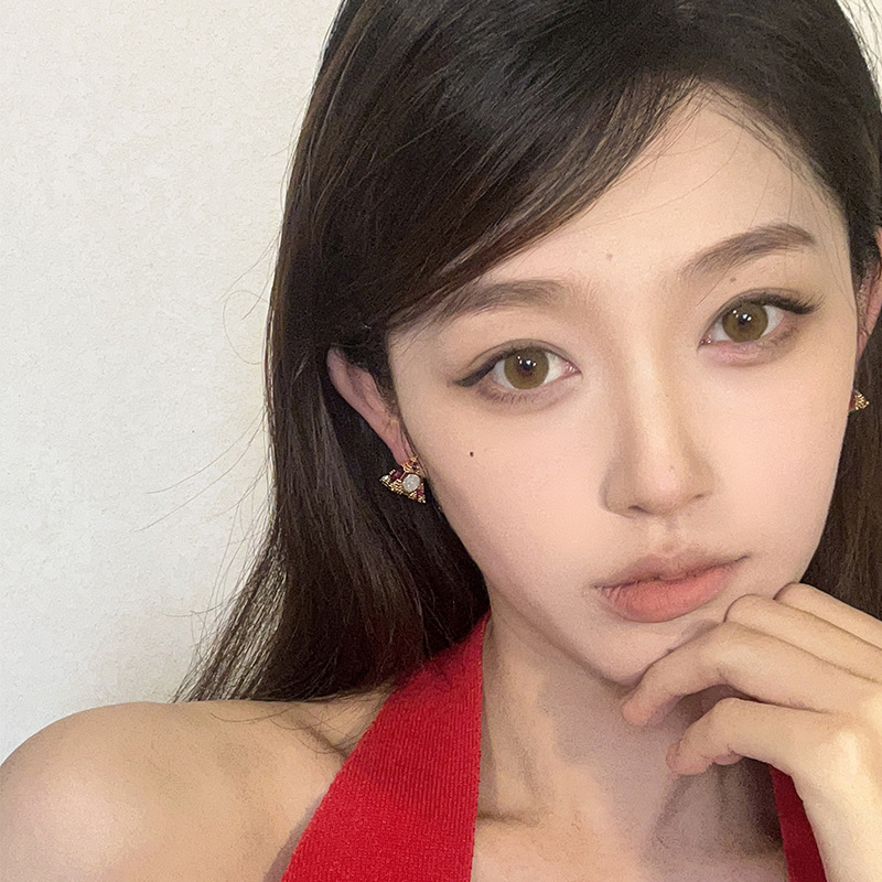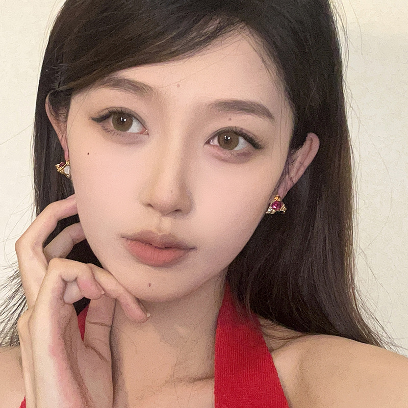 宫廷风设计国潮新品珐琅彩配饰镶嵌天然玉髓流苏古法金耳钉耳环女