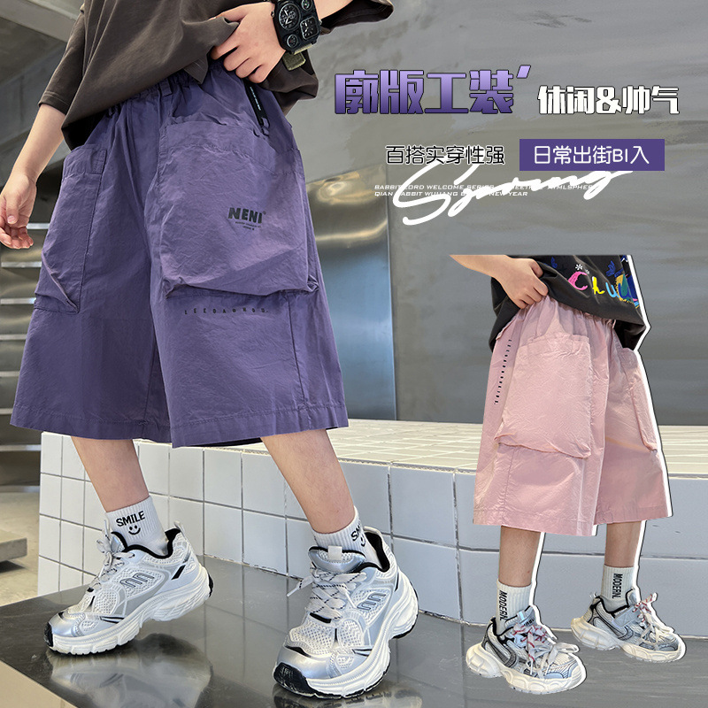 夏季中大男童休闲短裤新款童装儿童男孩大口袋中五分裤薄款百搭潮