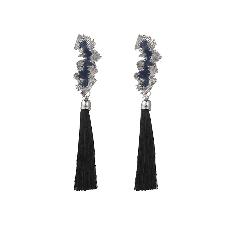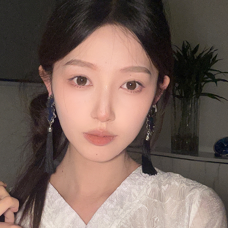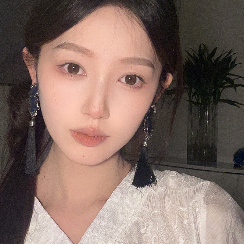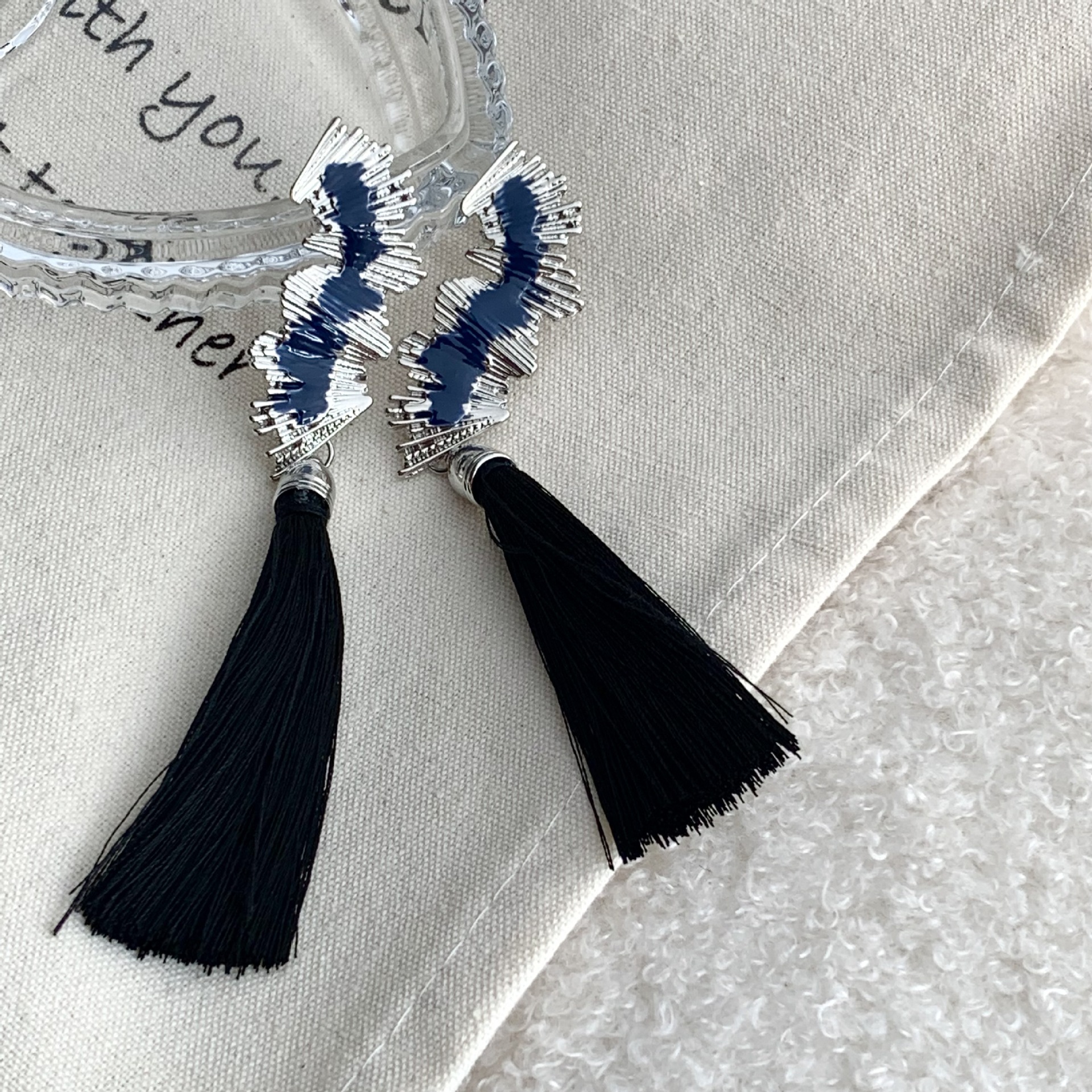新中式黑色几何流苏耳环女小众设计高级感长款耳饰年新款耳饰