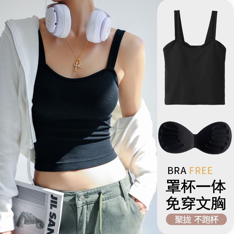 莫代尔宽肩带带胸垫免穿文胸打底小吊带女士内搭针织美背背心外穿