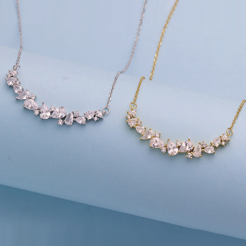S925纯银紫藤花项链女高级韩版轻奢小众感项链小碎钻微笑锁骨链