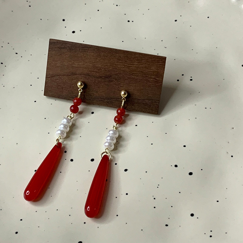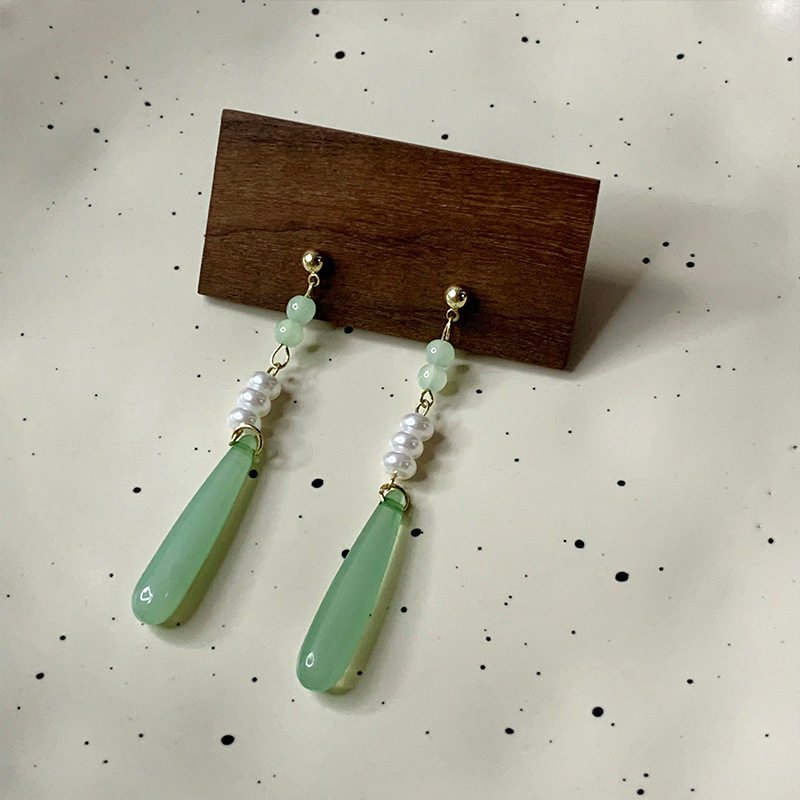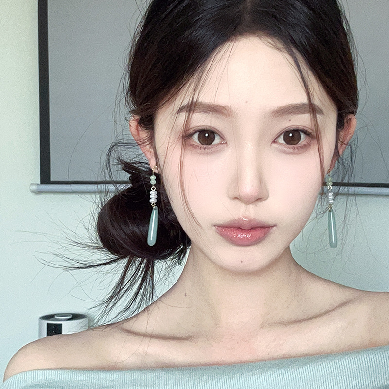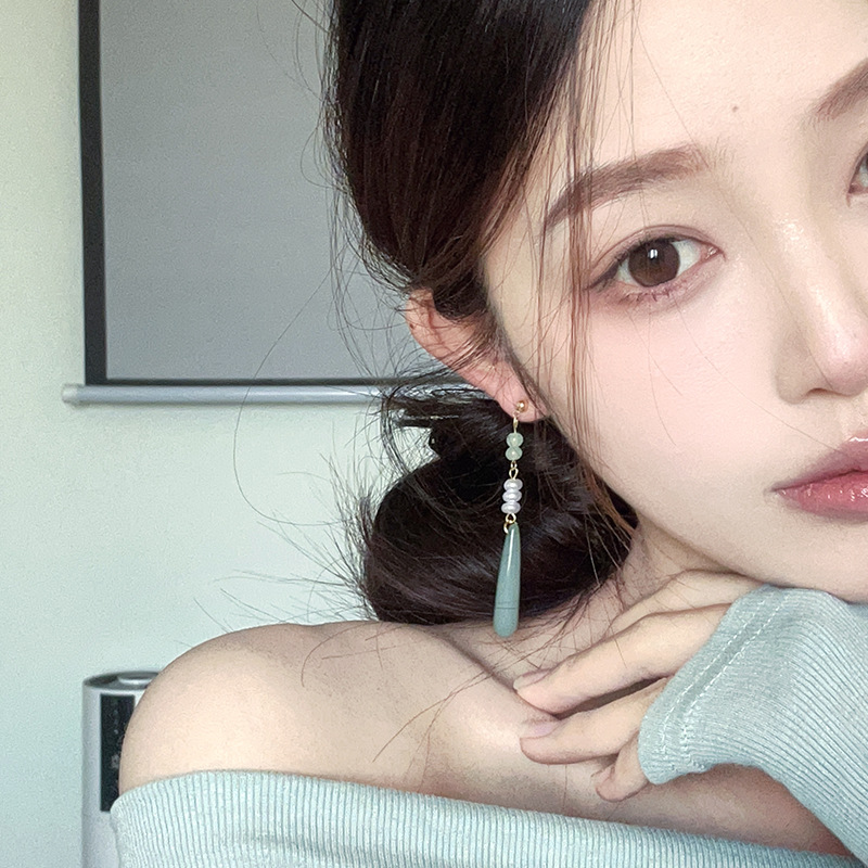 新中式玉石长款流苏耳环气质轻奢高级感耳钉年新款中国风耳饰
