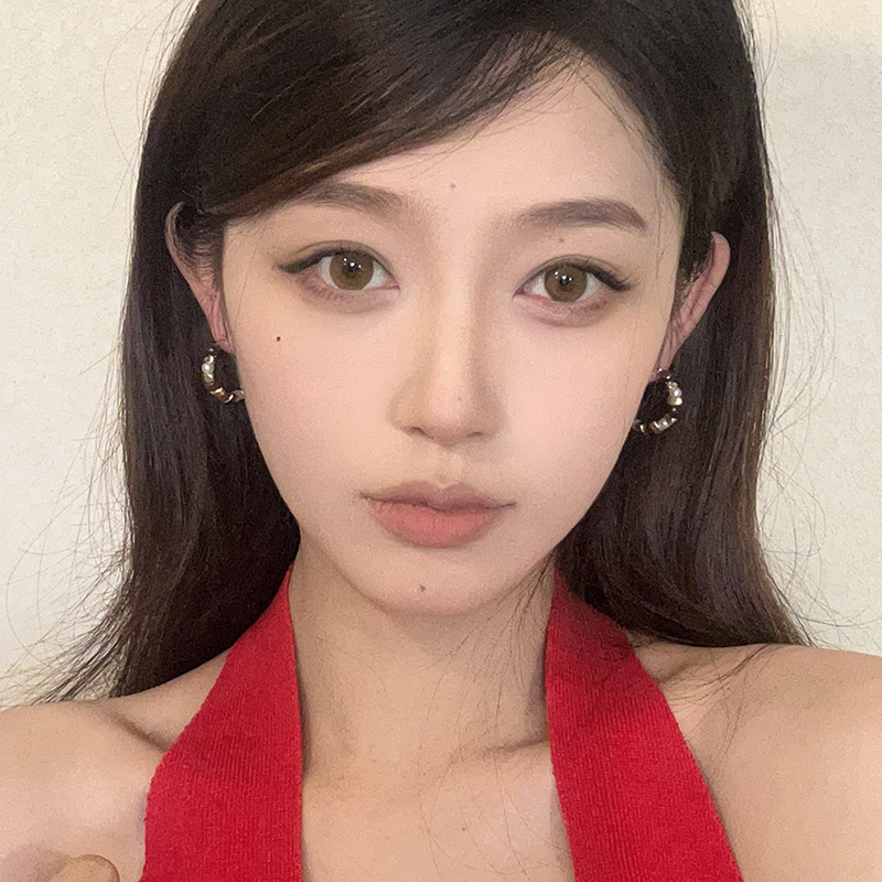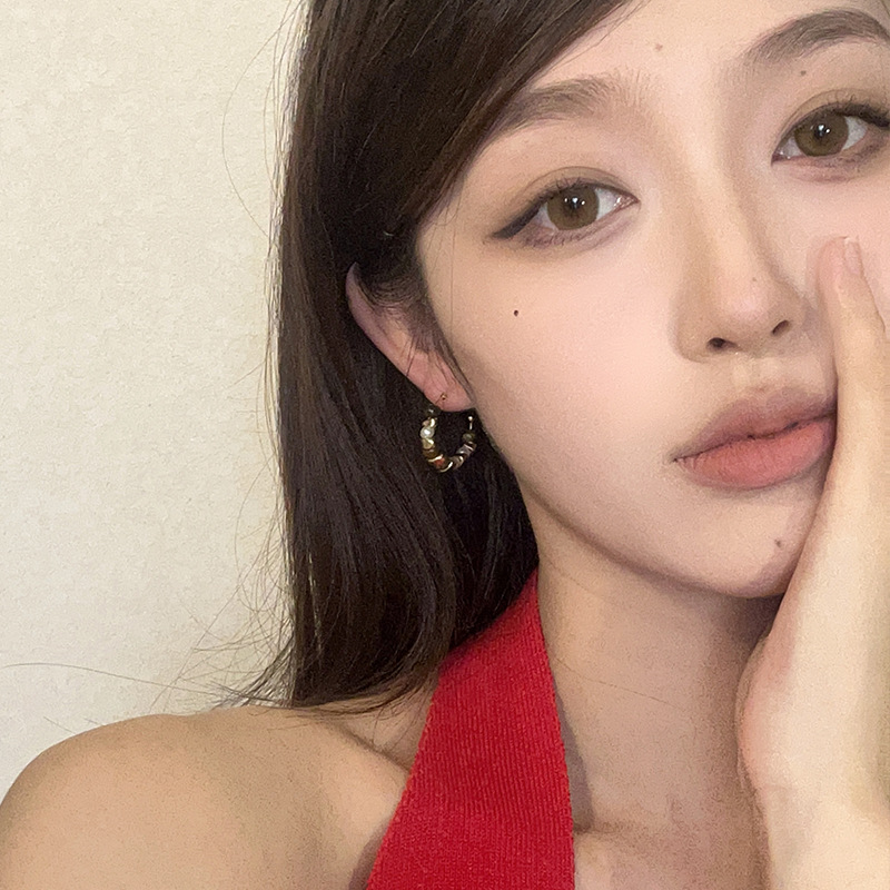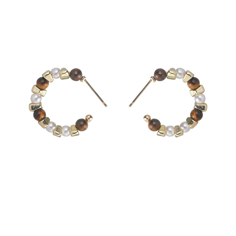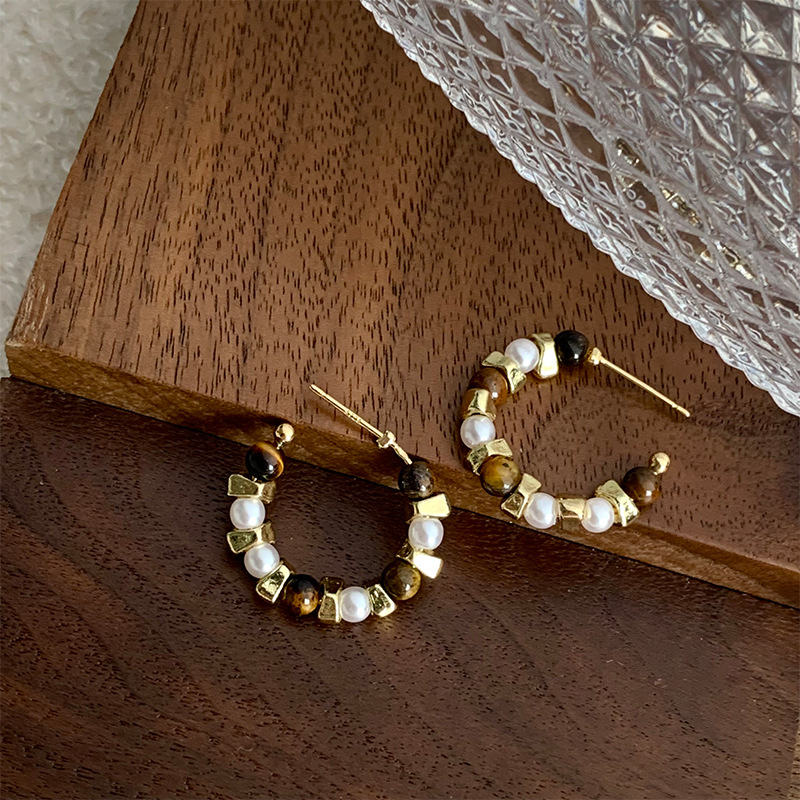 小众复古C字珍珠耳环个性气质不规则串珠耳钉ins高级感百搭耳饰女