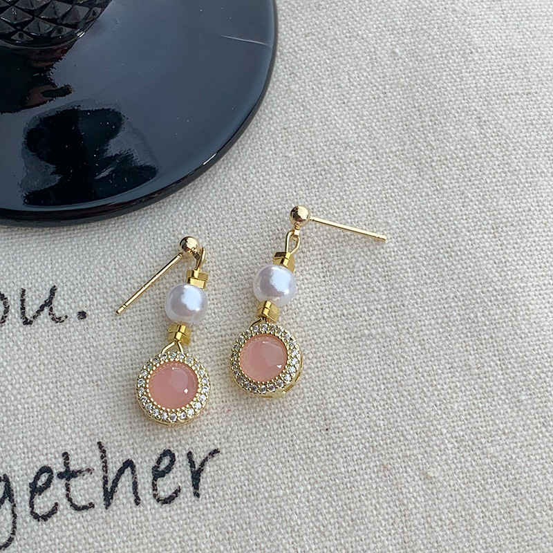 一念纯银古法金镶和田玉珐琅珍珠耳环女高级感轻奢气质小耳钉耳饰