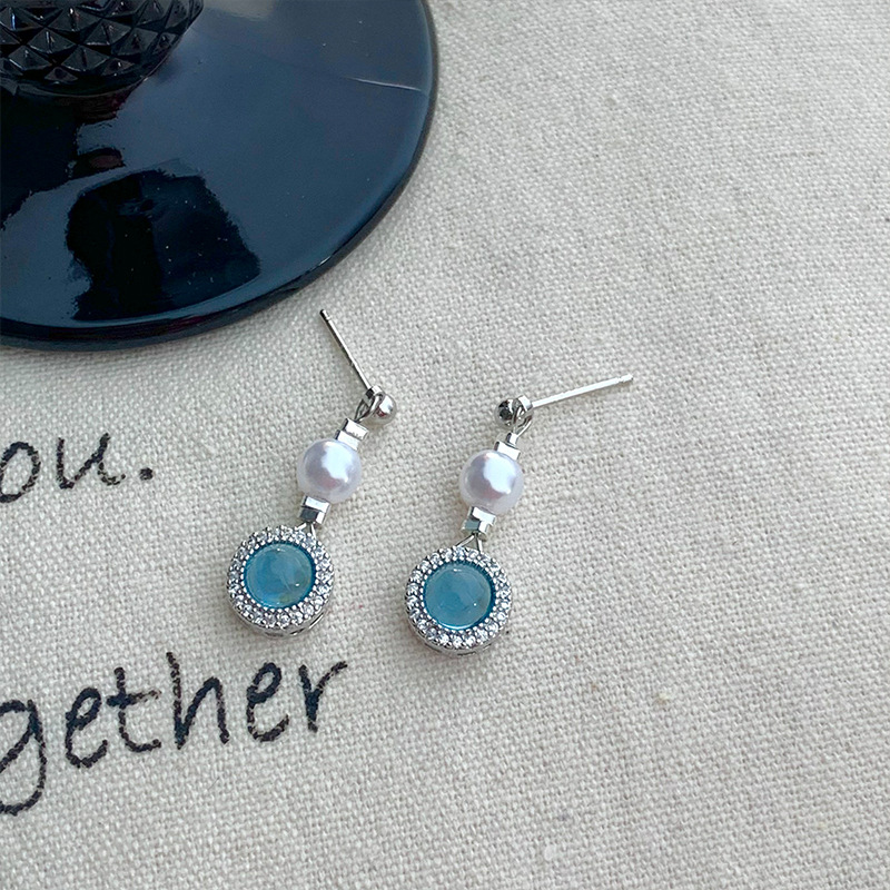 海蓝宝珍珠耳环女小众轻奢气质高级感耳钉年春夏新款百搭耳饰