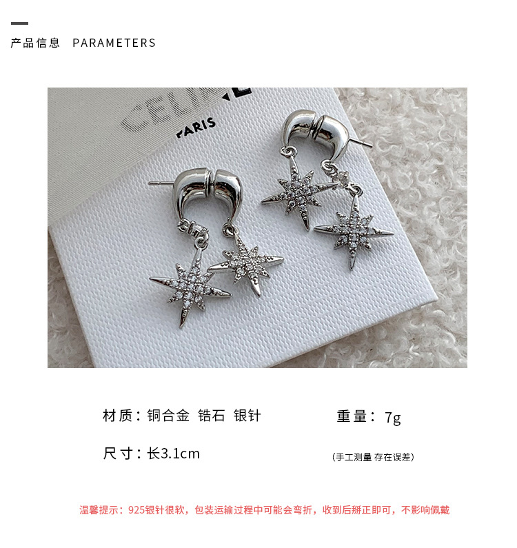 气质超闪锆石芒星耳钉 ins轻奢高级感耳环年新款百搭灵动耳饰