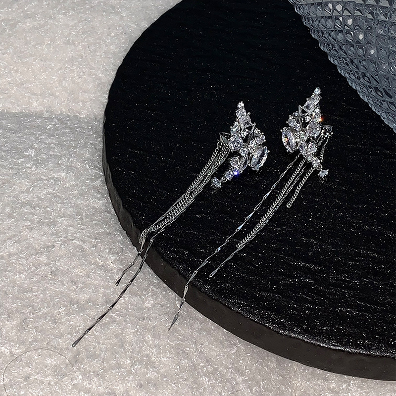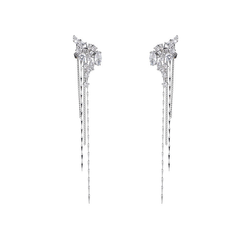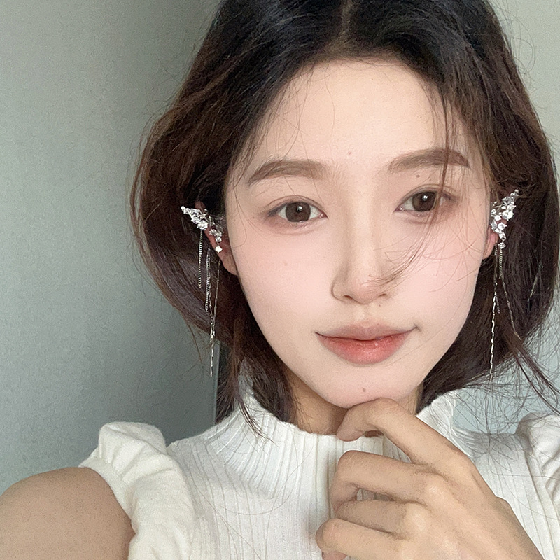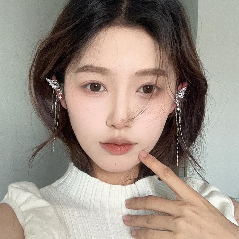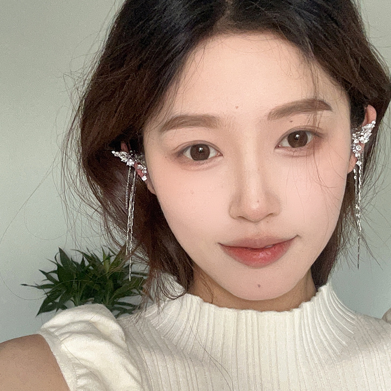 气质精致锆石半边蝴蝶耳夹女闪钻流苏无耳洞耳骨夹冷淡风新款耳饰