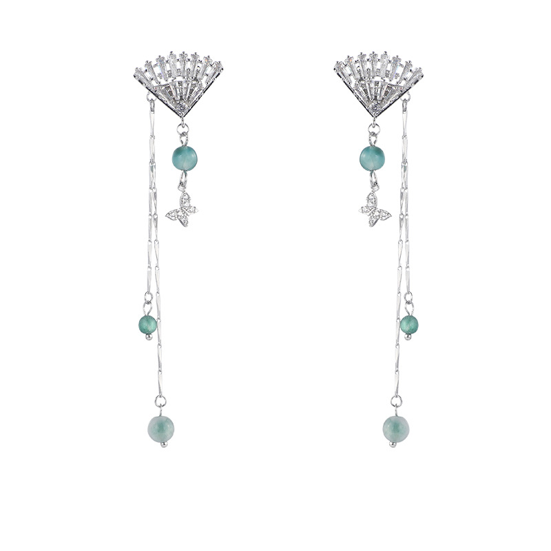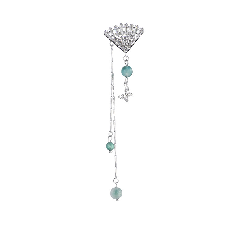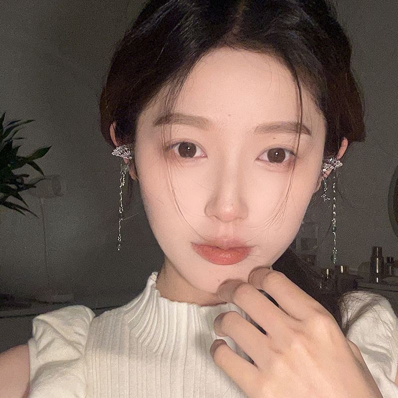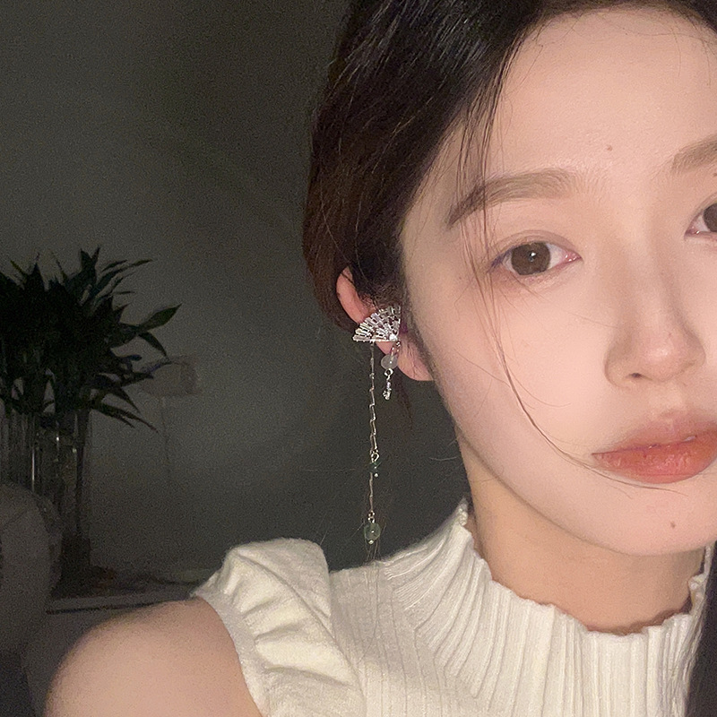 新中式气质精致锆石扇形蝴蝶流苏耳夹女冷淡风无耳洞耳骨夹耳饰潮