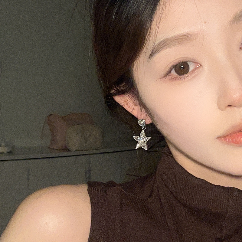 璀璨锆石五角星耳环女小众高级感超闪星星耳钉年新款百搭耳饰