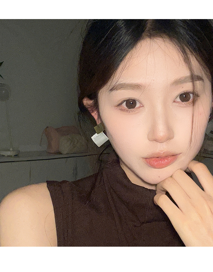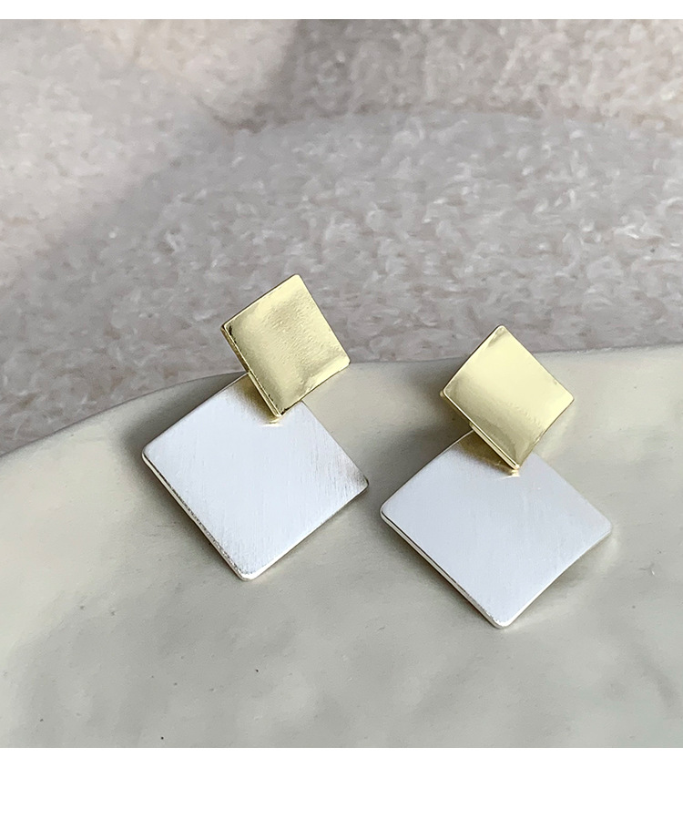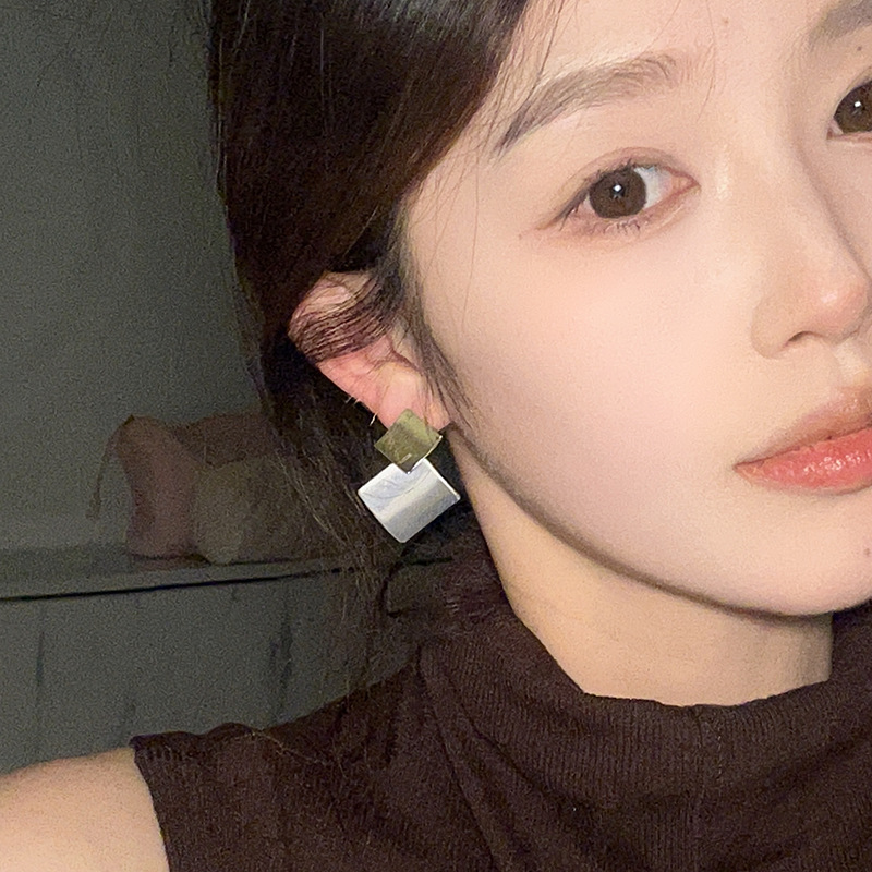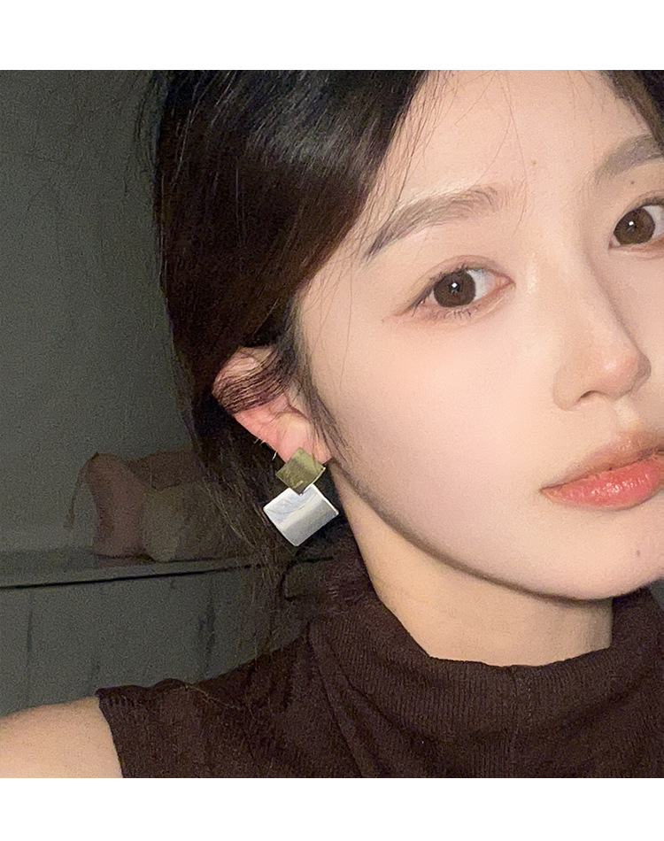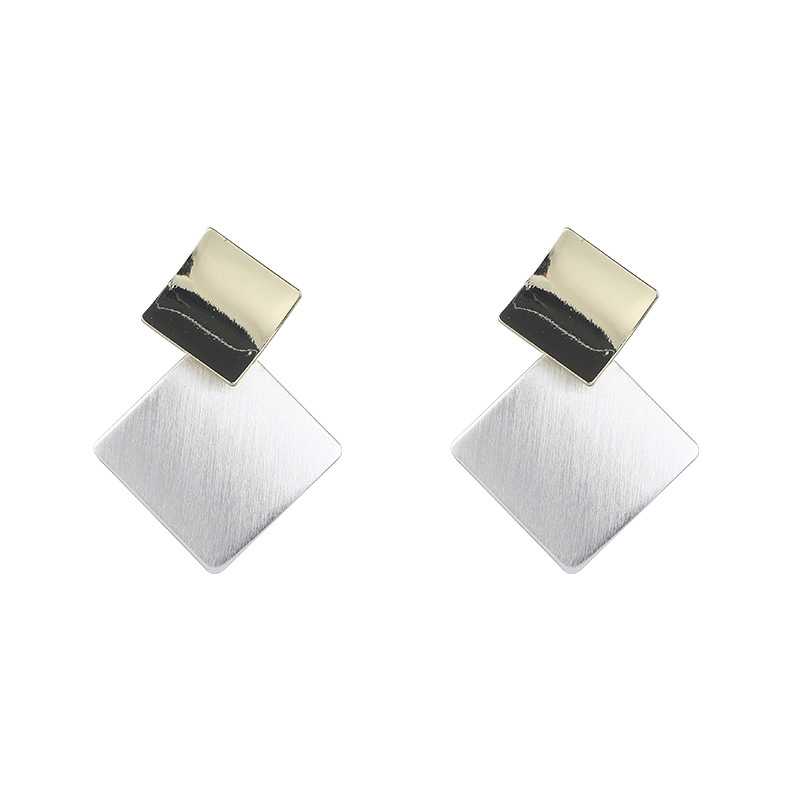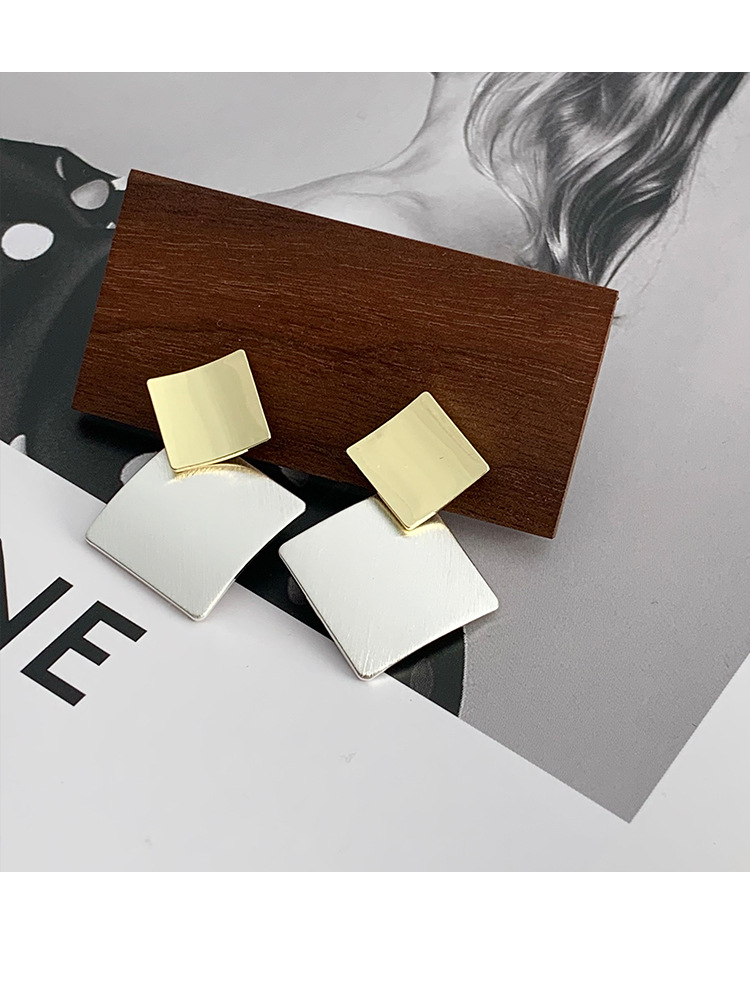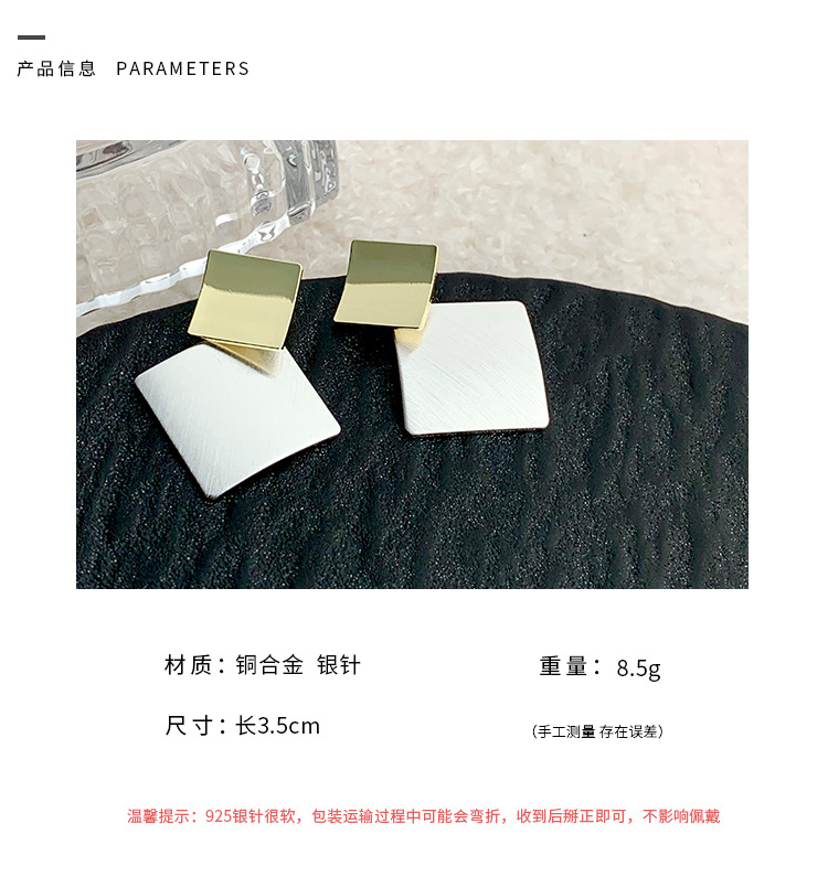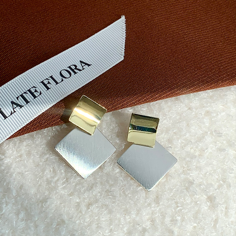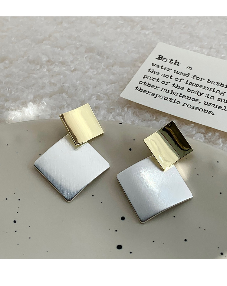 法式高级感金银撞色几何方形耳钉小众气质百搭耳环年新款耳饰