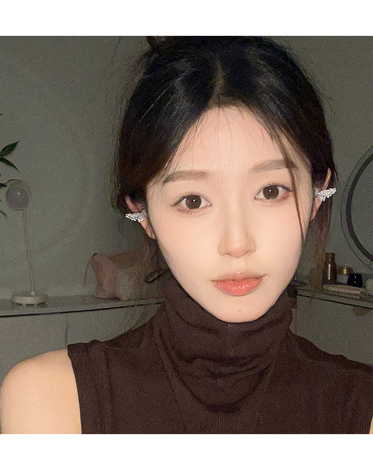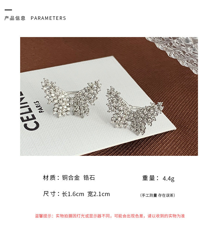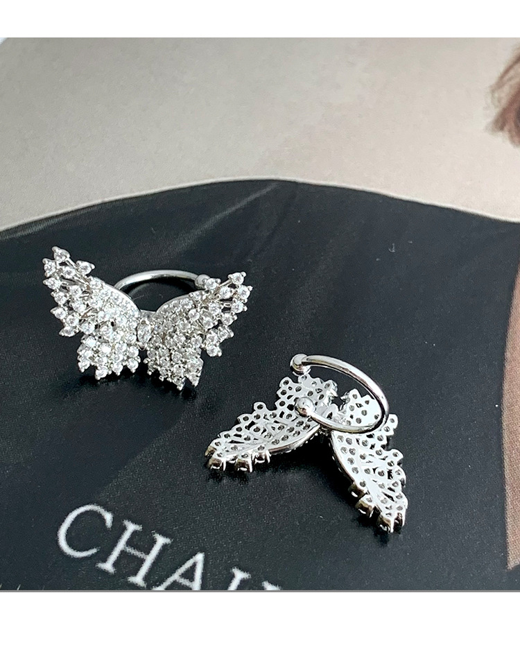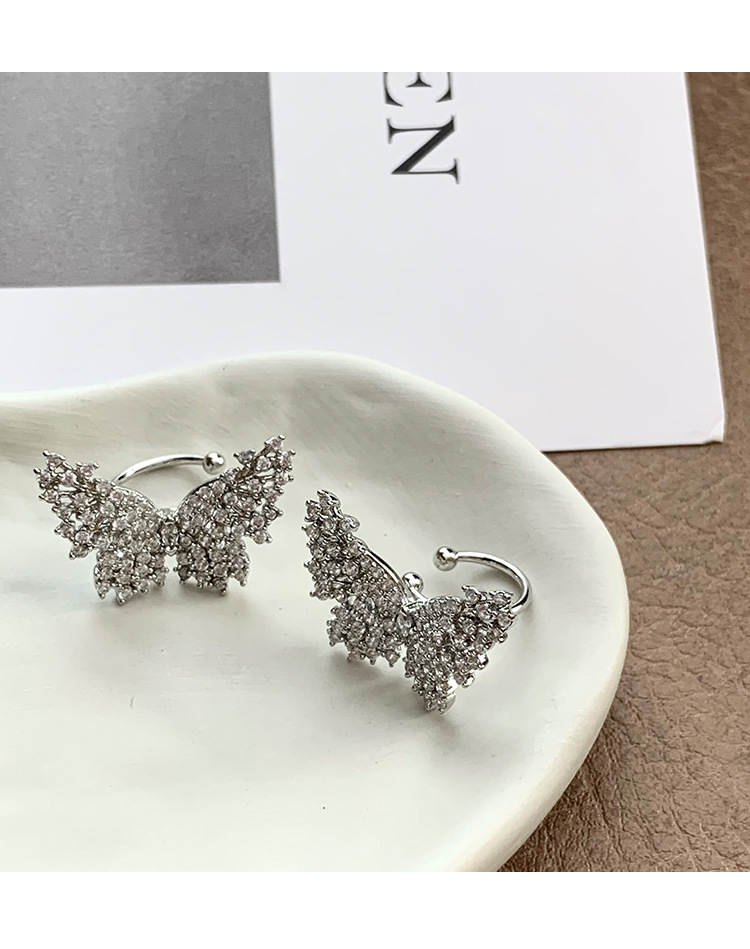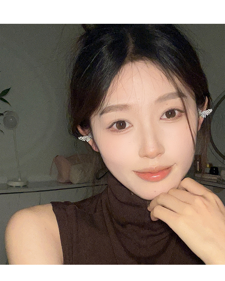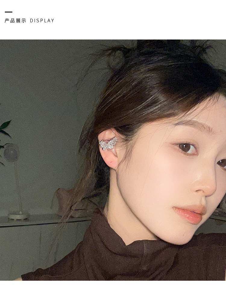 气质轻奢银色锆石蝴蝶耳夹女高级感闪钻耳骨夹年新款百搭耳饰