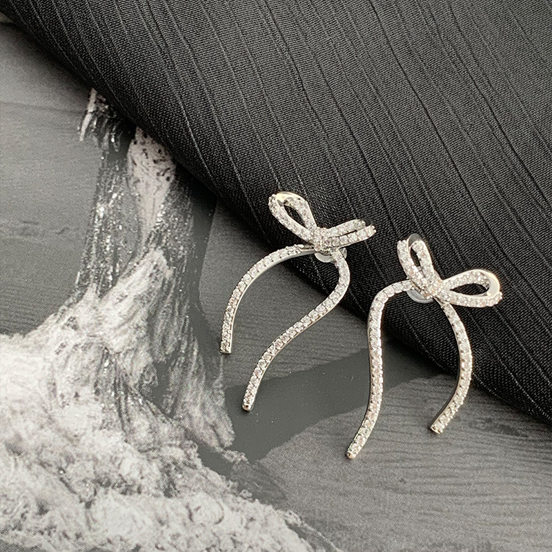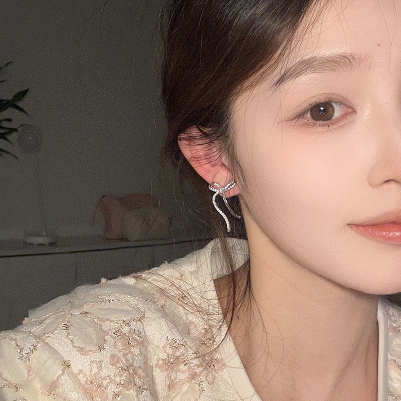 气质闪闪满锆蝴蝶结耳环女精致小众设计感轻奢耳钉年新款耳饰